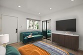 Property Id: 2093147 Carefully restored and designed by a renowned LA designer, these late 1950s modern luxury rental homes feature keyless entry door locks to spacious one and two-bedroom floor plans with newly renovated kitchen and bathrooms. The kitchen boasts sparkling white stone quartz countertops with brand new self-closing cabinetry and high-end stainless-steel refrigerators with matching gas cooktop with oven and microwave. iRing doorbells with a smart home video security camera are also included. There's a community washer and dryer on site. Bathrooms feature porcelain tiled bath tubs and glass shower doors. Each rental home also includes central A/C cooling and heating with recessed lights with luxury style cellular shade window blinds and distressed wood plank floors.