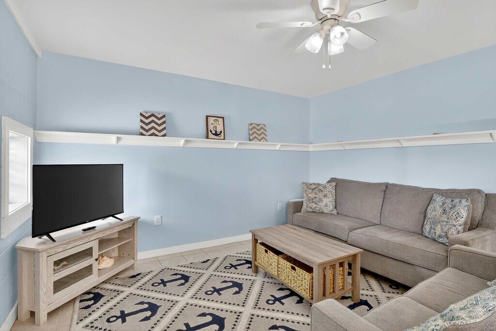 Welcome to your coastal retreat in South Topsail, a top-floor 4-bedroom, 2-bathroom haven with expansive decks. This charming apartment features brightly-painted pastel walls and comfy furniture, creating a cheerful atmosphere. Enjoy the grand living room with comfy couches and a 55" Roku smart TV, and a well-stocked kitchen with a dining table for eight. The big back deck and spacious backyard with a grill and picnic table offer perfect spots for outdoor relaxation. This apartment is designed for comfort and convenience, boasting BLAZING fast Wi-Fi and Roku smart TVs throughout. The grand living room invites you to unwind with its comfy couches and lounge chairs, while the well-stocked kitchen is perfect for preparing meals. A dining table that seats eight is ready for family gatherings, making this space ideal for your vacation. This property strictly enforces a no-pet policy, ensuring a clean and allergen-free environment for all guests. Nestled in the laid-back community of South Topsail, this apartment is less than 500 feet from beach access and a quarter-mile from the S. Topsail Boardwalk. The neighborhood offers beautiful beaches and a family-friendly atmosphere, with plenty to do on rainy days. Explore the downtown/boardwalk area with its shopping, restaurants, and ice cream, or visit nearby attractions like the Jolly Roger pier and the missile museum. Surf City is a short drive away, and Wilmington is just 40 miles to the south, offering museums, Battleship North Carolina, Fort Fisher Aquarium, and more. Jacksonville is 20 miles to the north, close to LeJeune's south gate. Smoking is not permitted in this apartment. The minimum age limit for renting this unit is 18. Guests can reach out 24/7 through phone, text, or email for any assistance during their stay.