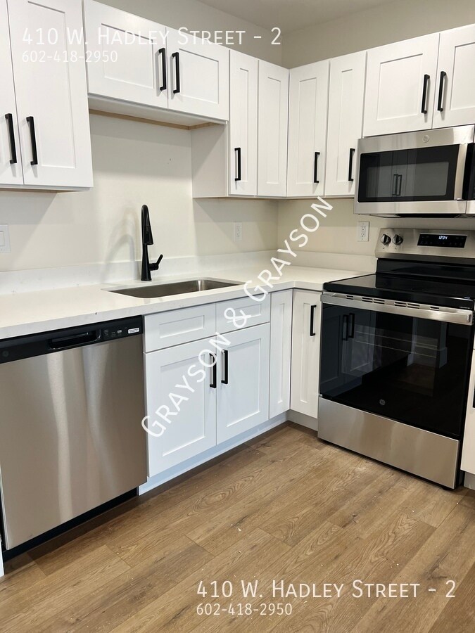 NEW Modern Townhome Living – Where Style Meets Comfort! AVAILABLE 12/01/2025. Welcome to your dream home! This beautifully designed 3-unit townhouse offers the perfect blend of elegance and functionality. ? Key Features: 2-Story Layout with private garage and entry Brand new framing, roofing, HVAC, water supply, sewer lines, windows, exterior/interior doors, exterior/interior paint, and R-38 insulation. The units feature stainless steel appliances, white shaker cabinets, quartz counters, LVP flooring, LED recessed lights, and in unit washer/dryer. Units are 2 bedroom 2 bathroom with xeriscape yards. Pets allowed. Less than 10min away from Downtown Phoenix.