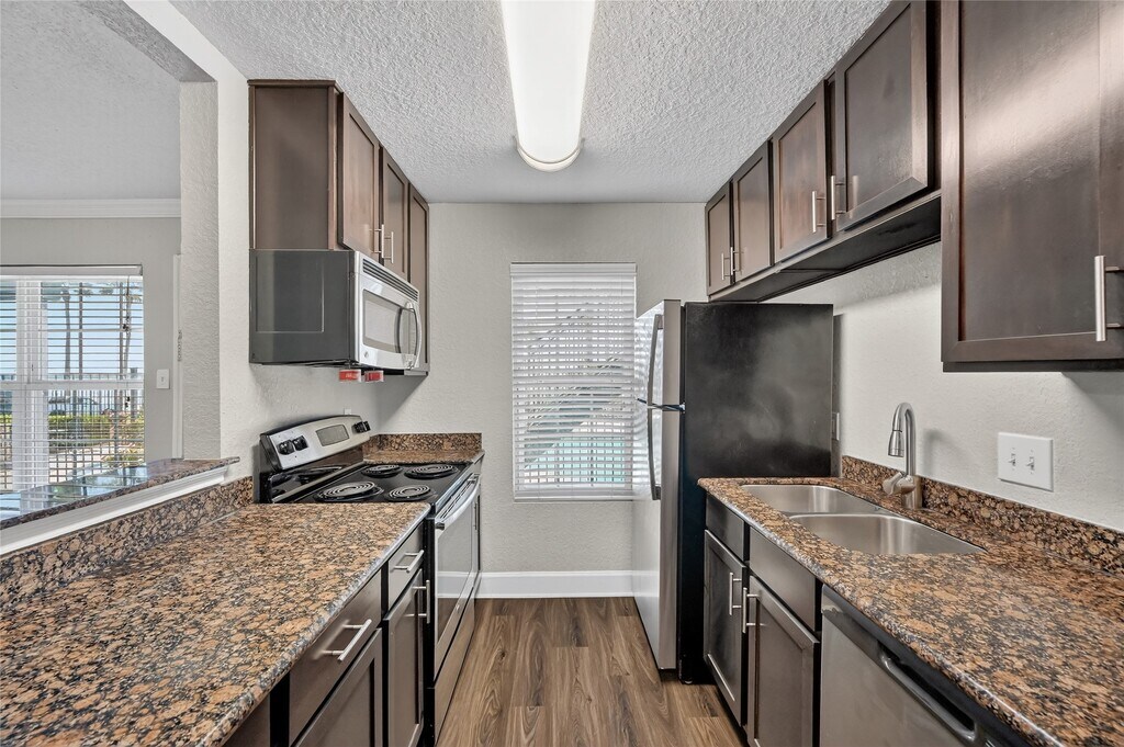 Welcome to waterfront living at Dwell at Clear Lake! Offering a perfect blend of comfort,style,& convenience in a highly desirable location. Step inside to an open-concept living space featuring modern wood-style flooring,neutral tones,& abundant natural light. Spacious living/dining area flows seamlessly into a well-appointed kitchen complete with granite countertops,updated cabinetry,& full-size appliances,making it both functional & inviting. Generously sized bedroom offers ample space along with dual closets for added storage,while the updated bathroom showcases a granite vanity & tiled tub/shower combination for a clean,modern finish. Additional features include a dedicated laundry area with washer/dryer connections,ceiling fans,& thoughtful layout design throughout. Conveniently located near NASA Parkway,I-45,shopping,dining,and entertainment,this property offers easy access to Clear Lake and Seabrook. Don’t miss this opportunity—schedule your showing today! MLS# 73525009