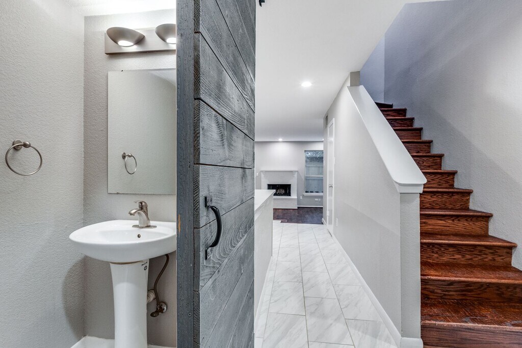 Great home in the heart of Oak Lawn! Home has had significant upgrades including, open kitchen, Carrara quartz countertops, stainless steel appliances, marble flooring, hand scraped hardwood floors in all rooms including the stairs, & remodeled baths with recent skylights. Large master with vaulted ceiling and large updated shower. Has a private wood deck larger than most properties of this area and era. Nice shelved storage closet under the stairs. Gated & well maintained complex. Fantastic location!
