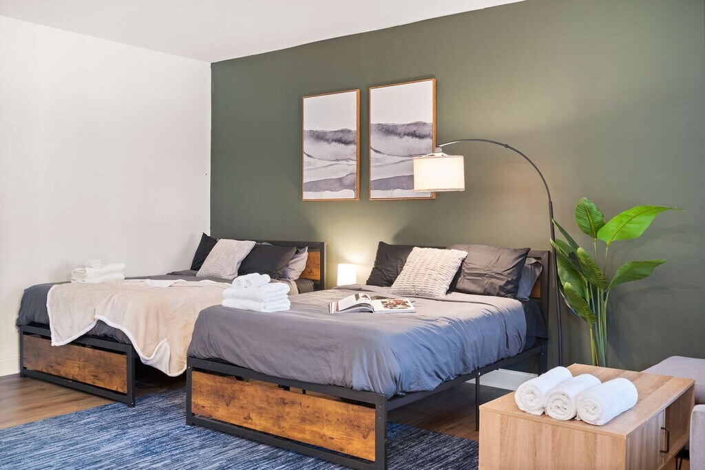 Feel at home in this classy 4-bedroom townhouse in Charlotte. This 1886 sq. ft. property features 2.5 bathrooms. Begin your day with a perfectly brewed cup of tea or instant coffee from the convenient coffee station in your upscale kitchen. The open-concept living area is elegantly furnished with plush seating and a 55” Smart 4K TV. The fully equipped kitchen features stainless steel appliances. There is also an in-unit washer and dryer. Situated in a lively neighborhood, this property is minutes from Uptown Charlotte and steps to restaurants, cafés, bars, and shops. It’s a 10-minute drive to the NASCAR Hall of Fame and Discovery Place Science, a 25-minute drive to Carowinds Amusement Park, and about a 15-minute drive to the Billy Graham Library. The U.S. National Whitewater Center is just 20 minutes away, while the Spectrum Center is a 9-minute drive. SouthPark Mall is a 15-minute drive, Bank of America Stadium is a 10-minute drive, Camp North End is a 12-minute drive, NoDa (North Davidson Arts District) is a 10-minute drive, Plaza Midwood is about a 9-minute drive, and Freedom Park is a 12-minute drive. Pets are welcome with a fee of $15 per night for 1 pet (capped at $195 per stay) or $25 per night for 2 pets (capped at $295 per stay). For pets over 35 lbs, there is an additional one-time fee of $49 for 1 large pet or $95 for 2 large pets. Failure to disclose pets or pay the required fees in advance may result in additional charges of $500 or more and/or cancellation of your reservation. If noise levels exceed 80 decibels for more than 10 minutes, guests will be charged a $2,500 fine and removed immediately, and the reservation will be canceled without a refund. Tampering with smoke detectors or triggering them due to smoking will result in a $2,500 fine, immediate removal, and reservation cancellation without refund. Unauthorized guests will result in a $500 fine per person, immediate removal, and non-refundable cancellation of the reservation. Includes a standing desk, perfect for remote work. [SI]