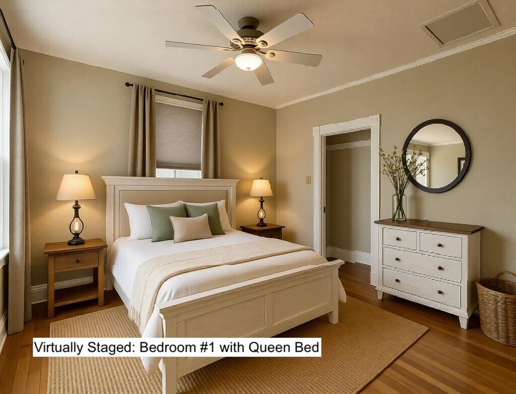 This unit is incredibly versatile. You will love it! The virtual staging photos are from another similar unit in the building, which show numerous options and examples. It can be used as a 3-bedroom or a 2-bedroom. As a 3-bedroom, the front room can be used as a bedroom with plenty of space for a home office. Then the living room could be in the comfortable common room off the kitchen. As a 2-bedroom, the front room can be a living room, and the common room off the kitchen can be a lovely formal dining room. The home is beautiful with a gorgeous kitchen. There's room for a small table in the corner, as well as space for stools at the peninsula counter. The covered porch in back offers plenty of space for additional storage. This unit is on the ground floor, with only one step to entry. This unit is exceptionally charming with beautiful 9-foot tall ceilings. You won't want to miss it. On top of all of that, LOCATION, LOCATION, LOCATION!! Right in the heart of the Saint Vincent's Historical District. A quick 10-minute walk to both the Ferry Terminal and the Farmer's Market / Downtown; each roughly 1/2 mile away. One street away from the beautiful St. Vincent's Church. And only 2 blocks from City Park! Unit #412 is perfect for business professionals, families, or anyone who wants to be in one of Vallejo's most walkable neighborhoods. This 3-Unit building has an extra-large shared yard and off-street parking. NOTE: All photos are from a similar unit and are virtually staged. Unit photos will be updated as soon as the current tenant moves out.