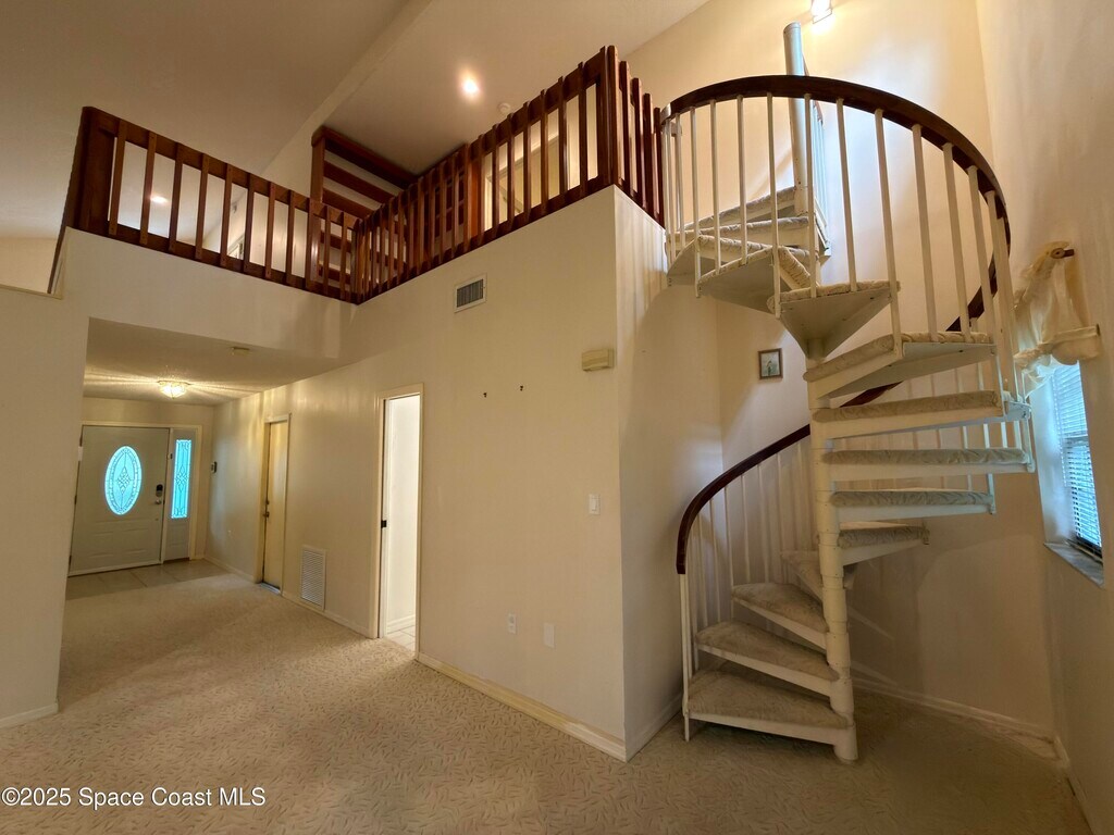 Light-filled two story in PSJ designed for true indoor/outdoor living. The main level features an airy great room flowing to an open kitchen and a separate dining room with a wraparound banquette. Walls of windows pull in natural light all day. A private bedroom with full bath on the first floor has its own entrance; ideal for guests,multigenerational living,or a home office. A spiral staircase leads to a generous primary suite with a screened balcony; the second upstairs bedroom opens to a front balcony. The loft style landing overlooks the great room and flexes as a lounge,reading nook,or workspace. Unwind on the large screened porch and in the fenced backyard framed by mature tropical plants and trees. Parking is easy with a true 2 car garage and oversized driveway. Character,flexibility,and sunshine move in ready. Mature pet considered with additional fees. No Section 8.