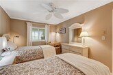 Enjoy this updated,immaculate,meticulous and spacious Park Shore condo. Rarely used and Tastefully decorated with new furnishings,fun tropical bedding and fully stocked kitchen for all your needs. Upon parking close to your private front door,this 1st floor condo is welcoming you into an Open Floor Plan lending it's large living room onto the glassed in lanai. This lanai stretches length of the condo and the views are private courtyard with beautiful lush plantings. Main bedroom offer King size bed and ensuite bathroom. Guest bedroom is conveniently located to the guest bathroom. The kitchen is updated with stainless steel appliances and huge laundry room is adjacent to kitchen. This over 55+ community is welcoming,offers large community pool and gatherings. Park Shore private Beach Pass is available within walking distance as is Venetian Village shops and restaurants. Y