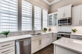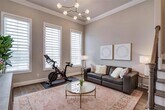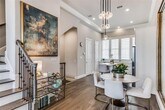 Gorgeous, townhome in desirable Addison Grove. This beautiful home has exquisite finishes like wood floors throughout, quartz countertops, soft close cabinets, 12 ft ceilings, Bosch appliances, Hans Grohe plumbing fixtures, designer lighting and specialty window coverings with electronic remote features. A 2-car garage is oversized with tons of storage space. The primary suite has a large shower with seat and frameless glass. Secondary bath has tub-shower. Powder bath on second floor with living space is perfect for guests. Both bedrooms are on the 3rd floor but on separate sides of the home. Addison Grove has 3 city parks within the community and provide the perfect space for pets or just enjoying the outdoors. Fantastic Addison location is walking distance to many restaurants and 15 min from DFW airport, downtown, Legacy West Business Park and many other places. Enjoy the Addison Athletic Center! **Please note NO PETS ALLOWED FOR THIS PROPERTY**