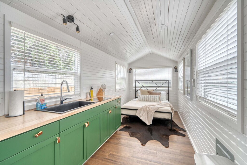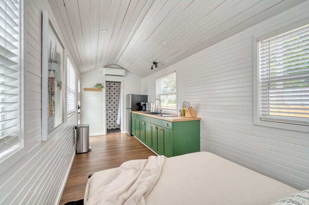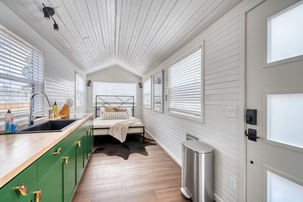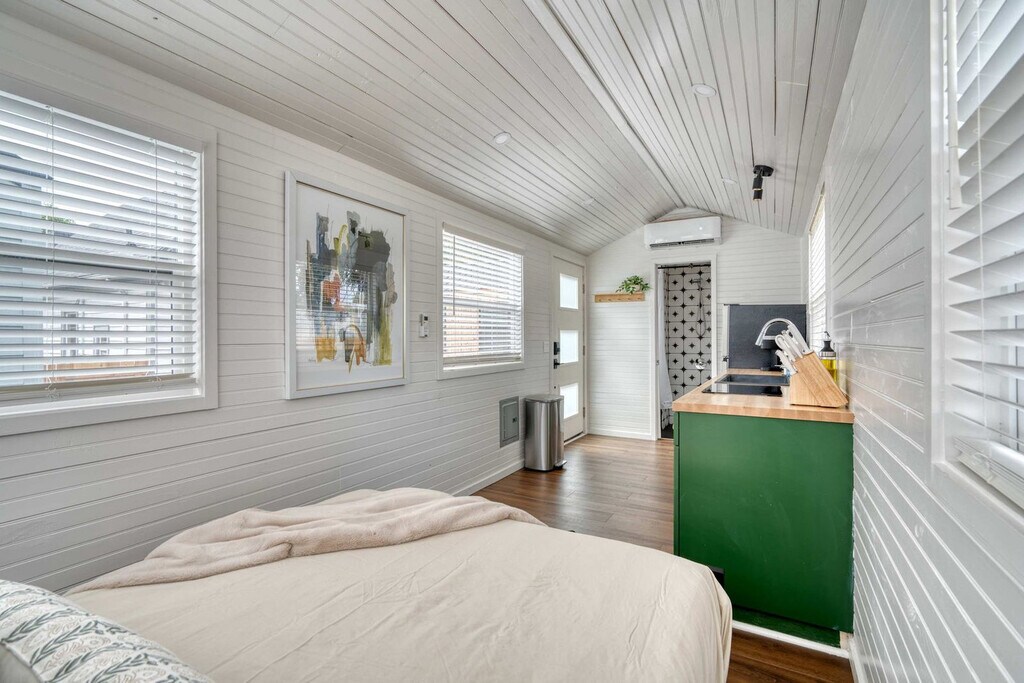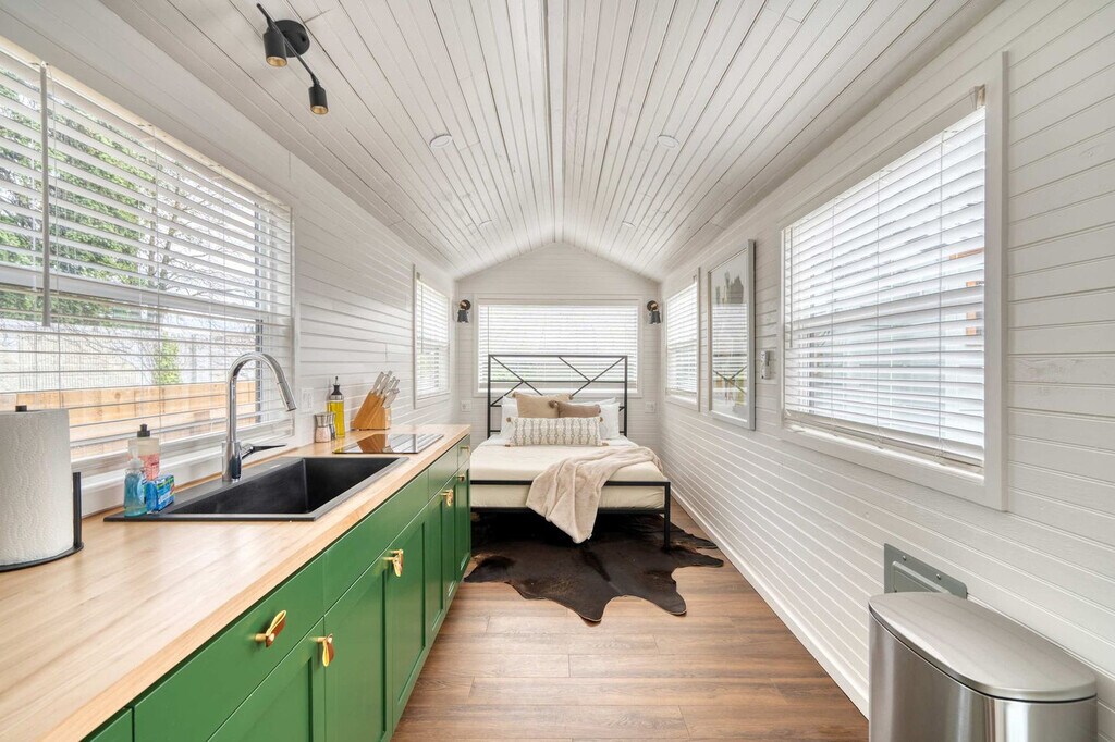 Feel at home in this unique Portland property, perfect for groups, featuring a 3-bedroom home and three private tiny homes. This property can sleep up to 12 guests comfortably and is located steps from Mississippi Ave’s top dining, bars, and boutiques, making it the ideal base for exploring Portland. The main house features three queen bedrooms, a full bath, a fully equipped kitchen, a cozy living room with a smart TV, and a washer/dryer. Each of the three tiny homes includes a queen bed, a kitchenette with a mini-fridge, stovetop, microwave, and sink, a private bath, and a washer/dryer. Heating and cooling are provided via mini-splits in each unit. Fast Wi-Fi is available for work or streaming. Window AC is provided in the main house, and mini-splits are in the tiny homes. A shared outdoor yard is available. Pets are allowed with a fee, and free street parking is available, but spots can be limited at peak times. Set in the heart of Portland’s vibrant Mississippi District, this location offers some of the city’s best food, drinks, and entertainment. Enjoy renowned spots like Por Qué No, Prost!, Lovely’s Fifty Fifty, and StormBreaker Brewing, all within walking distance. Explore boutique shops, vinyl stores, and art galleries sprinkled along Mississippi Ave. The Alberta Arts District is just a short drive or quick bike ride away. This neighborhood is perfect for those who love walkability, eclectic energy, and great dining right outside the door. This is an urban neighborhood, so expect the lively vibe of city life. Quiet hours are in effect from 10 pm to 7 am. Smoking tobacco or marijuana inside is strictly prohibited and if detected, will result in $150 penalty. Events and/or parties are strictly prohibited and will result in fines per host discretion and immediate eviction. Any unauthorized guest is subject to a $150/guest penalty. Unauthorized use of extra bed/s or bedroom/s a fine of $75. There is a $99/per dog fee, max of 2. Undeclared pets are subject to a $200 per stay penalty. Please respect check-in and checkout times. Any unauthorized early check-in or late check-out is subject to a $75 fee. A lost, missing or otherwise unreturned key is subject to $100 fee. Missing remotes will incur a $50 fee. Violation of house rules may result in eviction and/or monetary fine. [SI]