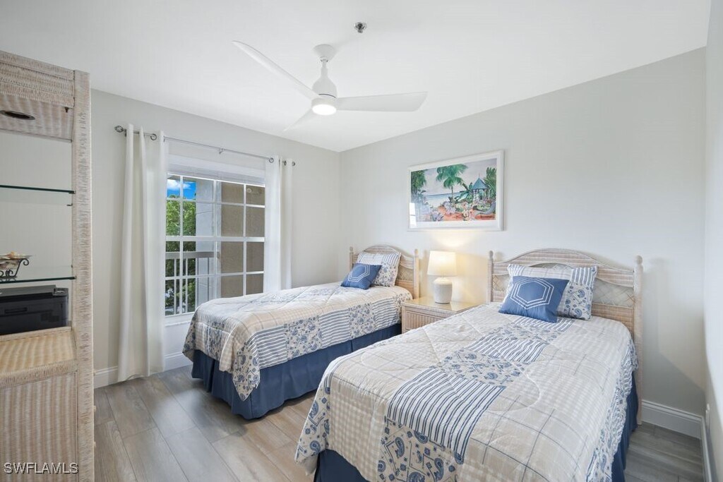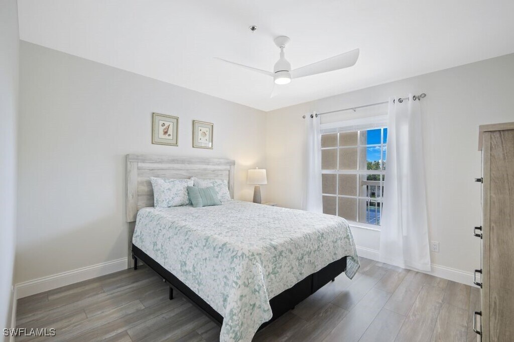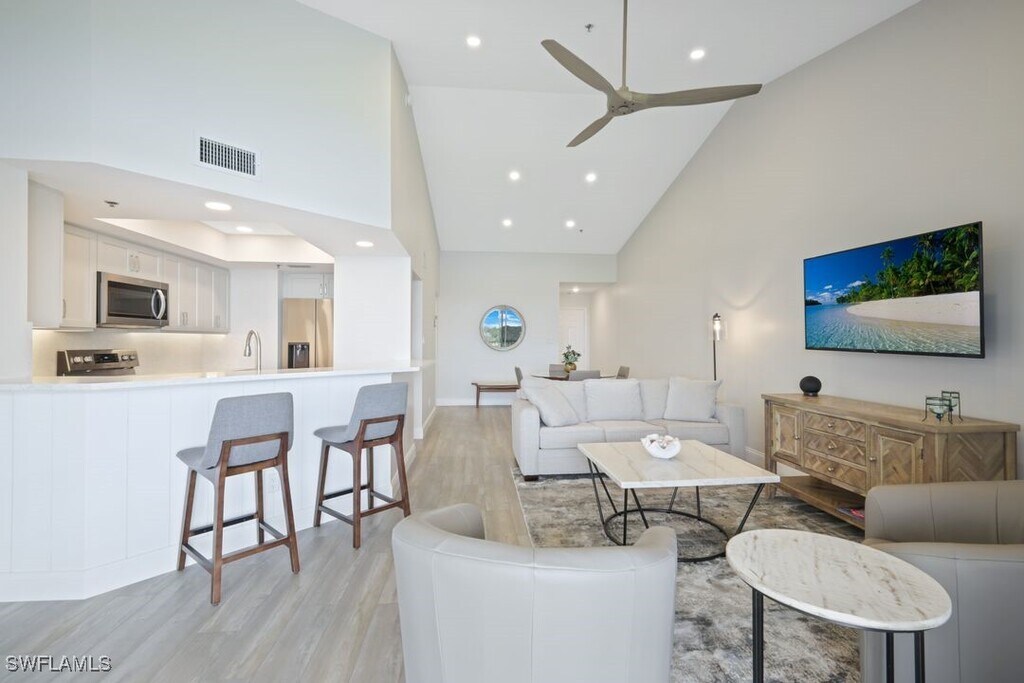 ASK ABOUT OUR DECEMBER SPECIAL! Experience luxury seasonal living in this fully renovated two-bedroom,two-bath condo in Greenbriar at Bonita Bay. Located on the third floor with elevator access,this light and bright residence features new wood flooring,a stunning open-concept kitchen with brand-new appliances,and a spacious center island perfect for entertaining. Both bedrooms offer king beds,and vaulted ceilings enhance the airy feel. Enjoy panoramic lake and golf course views from the screened lanai,ideally positioned for both sunrise and sunset. The residence includes one covered garage parking space with additional storage and additional parking. Greenbriar offers its residents a private pool,spa,tennis courts,community room,and shared grills. Bonita Bay residents enjoy a beach tram that takes you directly to the Gulf,miles of walking/jogging/biking paths,community parks,a marina,kayak launch,and on-site dining. A perfect seasonal retreat.