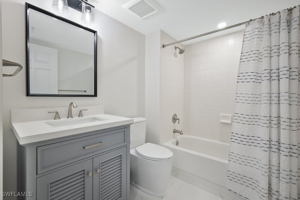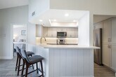 Indulge in the ultimate seasonal escape at Greenbriar in Bonita Bay with this turnkey-furnished top-floor 3 bedroom,2 bath condo. Available April 2026 and beyond. This fully renovated residence offers luxury living with new vinyl plank flooring,soaring vaulted ceilings,and an open floor plan that blends style and comfort. The modern kitchen boasts quartz countertops,abundant cabinetry,and a spacious breakfast bar. The primary suite features a king-size bed,custom closets,dual vanities,and a walk-in shower,while the split-bedroom layout ensures privacy for guests. New A/C for peace of mind! Located in an elevator building,this top-floor unit offers stunning golf course and natural marshland views. Attached garage parking is included. Greenbriar amenities include a newly updated pool and spa pavilion,plus tennis courts. Bonita Bay is the epitome of Florida luxury with 5 championship golf courses,tennis,pickleball,bocce,a clubhouse with lifestyle,fitness,and spa facilities,a full-service marina,waterfront dining,a private beach park,12 miles of biking and jogging trails,shuttle service to the beach club,and a rich calendar of social activities. Vacation in paradise!