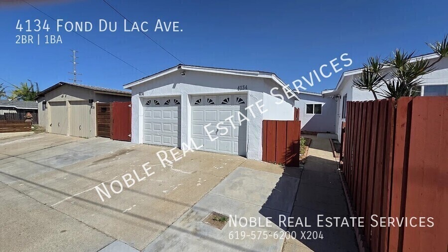 2695.00 Dogs OK Cats OK Pets Ok. (Breed Restrictions Apply) No Yes Remodeled 2-bedroom, 1-bath duplex ready for move-in! This duplex is located in the heart of the Clairemont Mesa area and features a 1-car attached garage, a rectangular backyard area, a new washer and dryer, dual-pane windows throughout, and new kitchen and bathroom cabinets. The living room and kitchen have tile flooring, while the bedrooms feature hardwood flooring. A must-see to appreciate! SS 4/17/26 (yc) 1 YEAR LEASE. TENANT PAYS FOR ALL UTILITIES WATER 50/50 WITH OTHER UNIT NO AGGRESSIVE BREED DOGS! (**If no showtimes are available, don’t worry! Go ahead and submit your info and our automated system will let you know when showtimes become available). Also, please be sure to click on the 'Apply Now' button to see all of our requirements and how we work! No Noble Real Estate Services www.NobleProperties.info 1371 Presioca St. Spring Valley CA 91977 Yolanda, Emily Or Alex option 1 Bathroom Garage Stove W/D In Unit