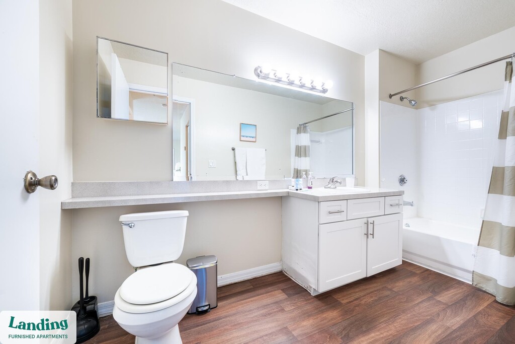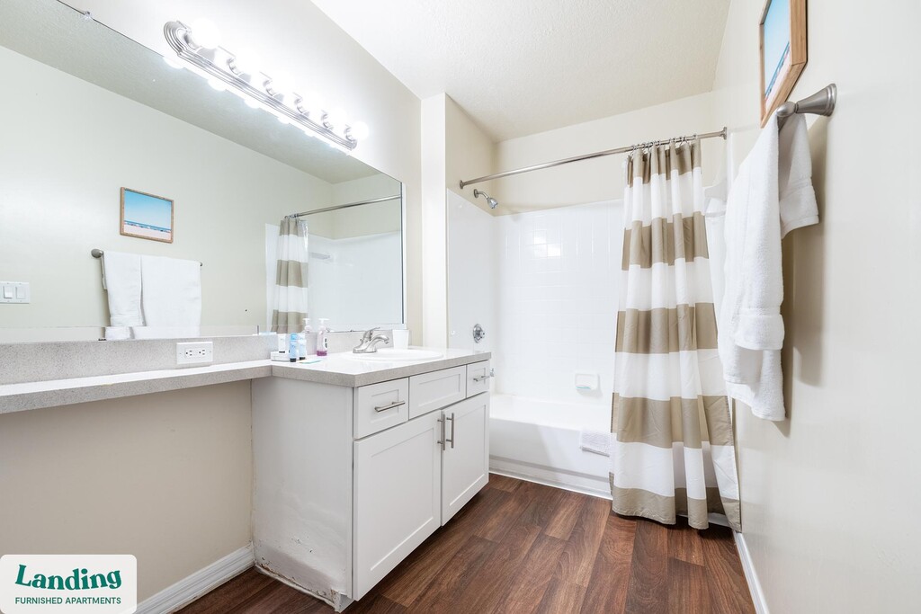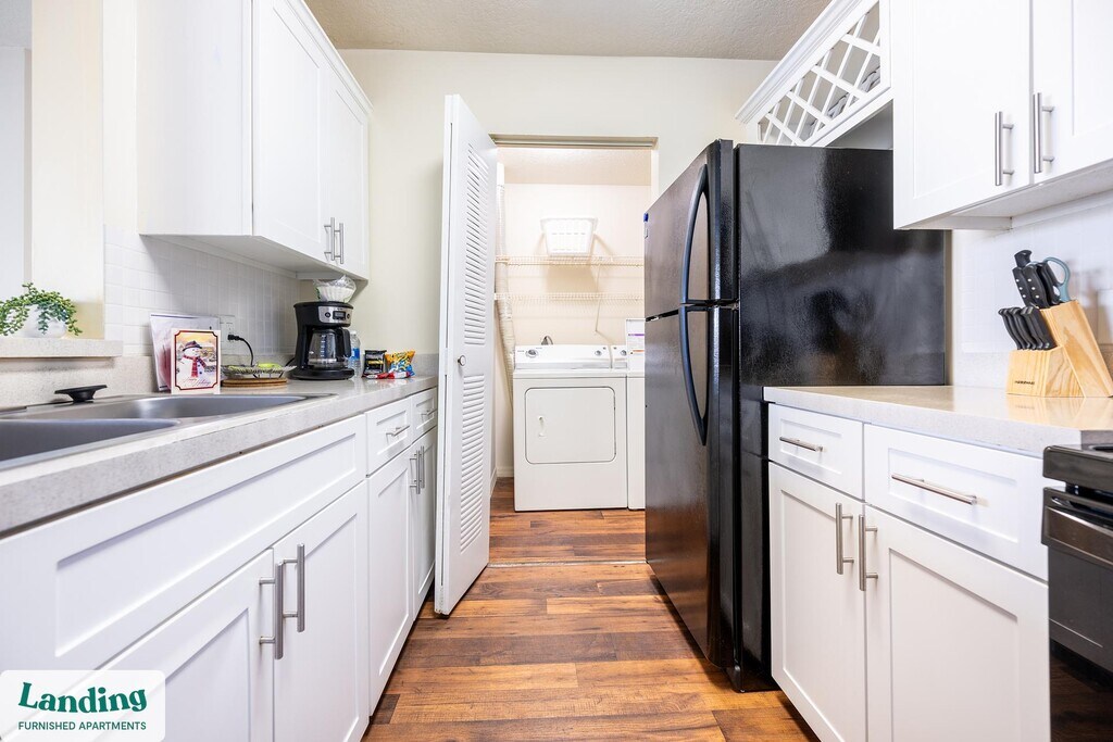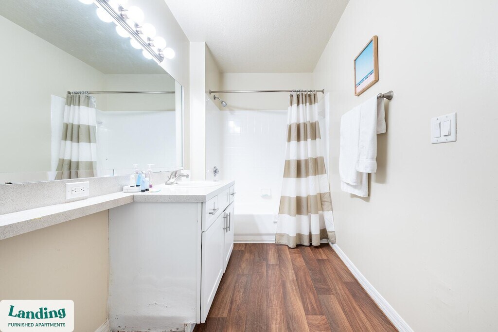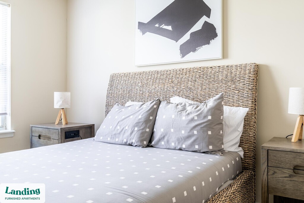 Landing offers flexible lease terms from weeks to months. Please always visit our website or contact us for the latest pricing & availability. Stay longer, save more: 6-Month Minimum base rent: starts at $2502/mo 12-Month Minimum base rent: starts at $2176/mo Landing offers flexible leases across a network of over 35,000 fully-furnished apartments throughout 375+ cities so you can rent on your terms, practically anywhere, and avoid the hassle of paying deposits or application fees. Visit to learn about all the benefits of a Landing membership, see our competitive up-to-date pricing, explore available apartments, take virtual tours, and make reservations online without jumping through traditional rental hoops. Landing's apartments at Champions Walk are designed for comfortable, easy living, with the ability to stay as long as you like. Experience living with Landing Every apartment is outfitted with all the modern essentials including: custom-designed furnishings, a fully-equipped kitchen with deluxe stainless steel appliances, a gourmet coffee maker, premium linens, Smart TVs, and incredibly fast, reliable internet for working from home. When you live with Landing, you'll enjoy a hassle-free experience with the added benefit of 24/7 access to our dedicated member experience team. Some of the nitty-gritty: a background check and proof of income are required; we're completely smoke-free; bundled utility packages and pricing vary based on length of stay; pet-friendly options available; listed price reflects a 12-month minimum stay.