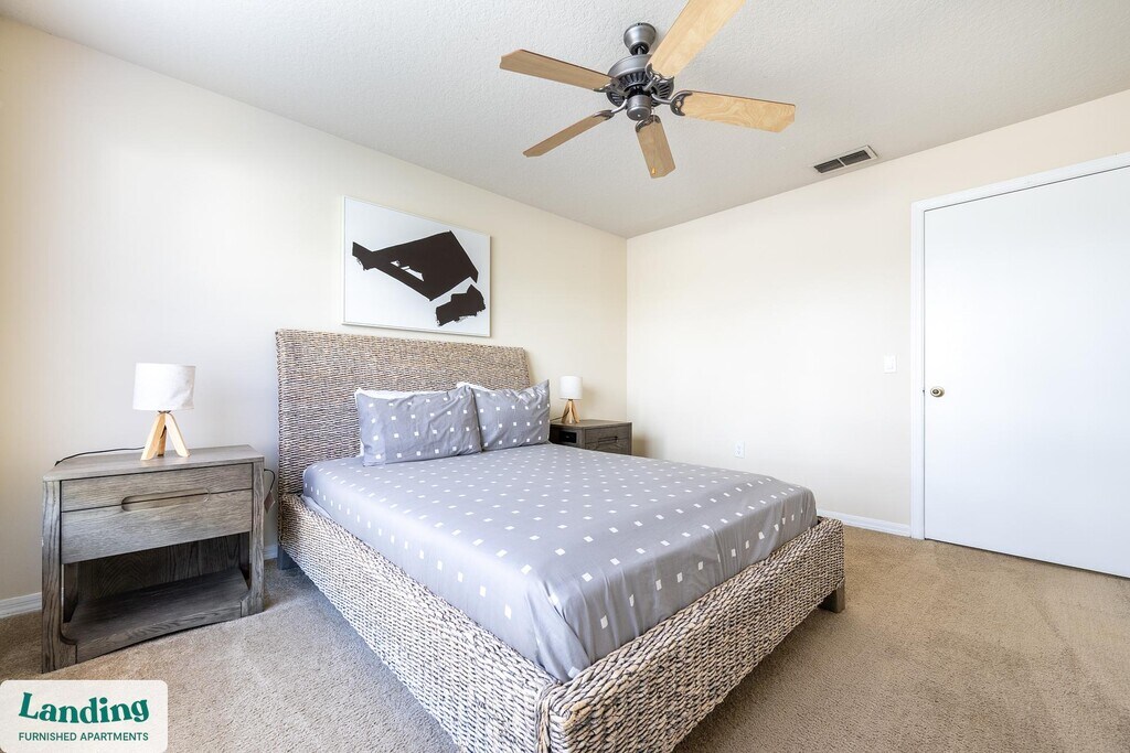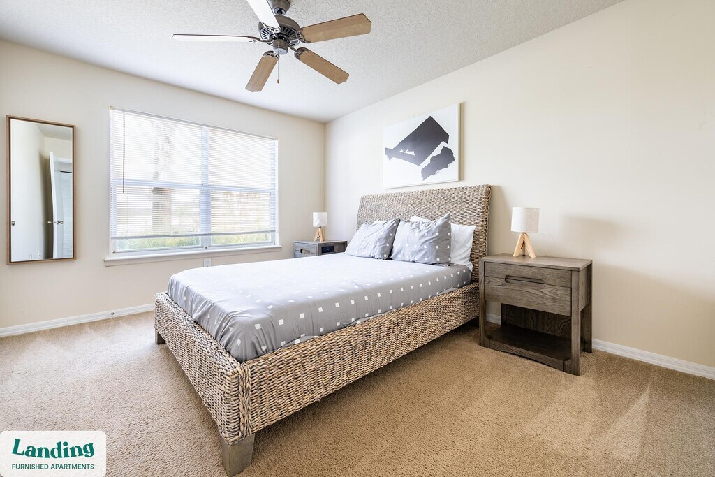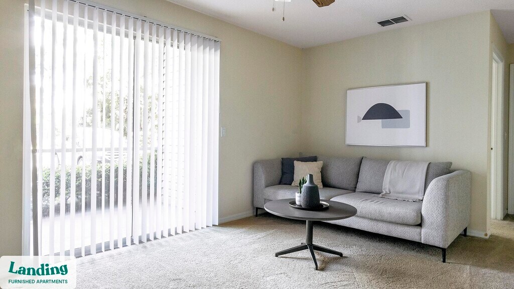 Landing offers flexible lease terms from weeks to months. Please always visit our website or contact us for the latest pricing & availability. Stay longer, save more: 6-Month Minimum base rent: starts at $2612/mo 12-Month Minimum base rent: starts at $2288/mo Landing offers flexible leases across a network of over 35,000 fully-furnished apartments throughout 375+ cities so you can rent on your terms, practically anywhere, and avoid the hassle of paying deposits or application fees. Visit to learn about all the benefits of a Landing membership, see our competitive up-to-date pricing, explore available apartments, take virtual tours, and make reservations online without jumping through traditional rental hoops. Landing's apartments at Champions Walk are designed for comfortable, easy living, with the ability to stay as long as you like. Experience living with Landing Every apartment is outfitted with all the modern essentials including: custom-designed furnishings, a fully-equipped kitchen with deluxe stainless steel appliances, a gourmet coffee maker, premium linens, Smart TVs, and incredibly fast, reliable internet for working from home. When you live with Landing, you'll enjoy a hassle-free experience with the added benefit of 24/7 access to our dedicated member experience team. Some of the nitty-gritty: a background check and proof of income are required; we're completely smoke-free; bundled utility packages and pricing vary based on length of stay; pet-friendly options available; listed price reflects a 12-month minimum stay.