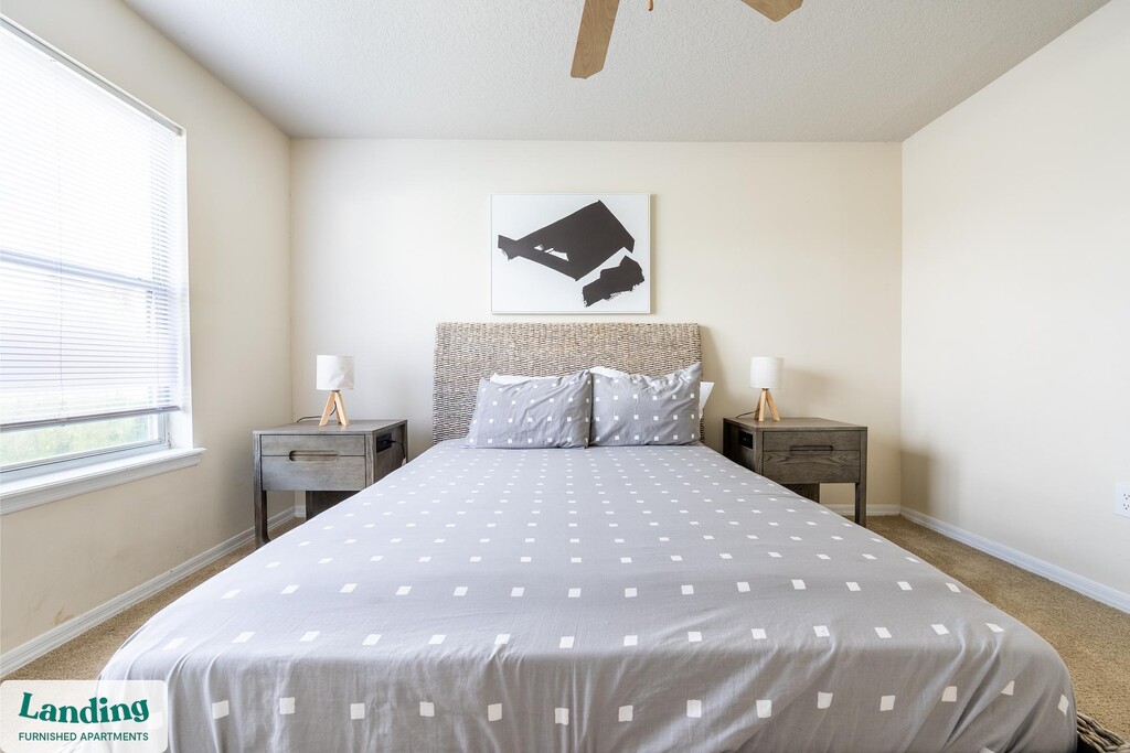 Landing offers flexible lease terms from weeks to months. Please always visit our website or contact us for the latest pricing & availability. Stay longer, save more: 6-Month Minimum base rent: starts at $2096/mo 12-Month Minimum base rent: starts at $1646/mo Landing offers flexible leases across a network of over 35,000 fully-furnished apartments throughout 375+ cities so you can rent on your terms, practically anywhere, and avoid the hassle of paying deposits or application fees. Visit to learn about all the benefits of a Landing membership, see our competitive up-to-date pricing, explore available apartments, take virtual tours, and make reservations online without jumping through traditional rental hoops. Landing's apartments at Champions Walk are designed for comfortable, easy living, with the ability to stay as long as you like. Experience living with Landing Every apartment is outfitted with all the modern essentials including: custom-designed furnishings, a fully-equipped kitchen with deluxe stainless steel appliances, a gourmet coffee maker, premium linens, Smart TVs, and incredibly fast, reliable internet for working from home. When you live with Landing, you'll enjoy a hassle-free experience with the added benefit of 24/7 access to our dedicated member experience team. Some of the nitty-gritty: a background check and proof of income are required; we're completely smoke-free; bundled utility packages and pricing vary based on length of stay; pet-friendly options available; listed price reflects a 12-month minimum stay.