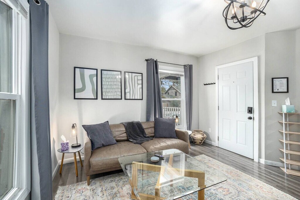 Feel at home in this renovated apartment in a safe area, less than a mile away from all hospitals on Medical Mile. This apartment is in the heart of Grand Rapids and within walking distance to many top locations. The kitchen is stocked with dishes, silverware, cups, mugs, wine glasses, pots and pans, kitchen utensils, dish soap and sponge, hand soap, garbage bags, a fire extinguisher, cleaning solution, cleaning rags, kitchen hand towels, oven mitts, leftover containers, a coffee pot, toaster, knives, a cutting board, and coffee. The bathroom is stocked with hand soap, towels, garbage bags, a hair dryer, and a first aid kit. The mattress has a mattress protector and the pillows have pillow protectors that are washed between each stay. Small dogs are allowed with a one-time $149 pet cleaning fee and $40/month/pet additional fee. This centrally located apartment is close to everything in Grand Rapids. You can be to any highway or in the heart of downtown in less than 5 minutes. There are many bus stops nearby as well as numerous electric scooters and bikes for rent across the street. Also, ride-share services are readily available throughout the city. The neighborhood is very safe with a lot to do in the area and is within walking distance to many restaurants and coffee shops. It is also a short distance from the historic 6th St Bridge. There might be some muffled white noise from the highway that you may hear from time to time. All rentals will be a minimum of 30 days. You must be 18 or older to book. [SI]