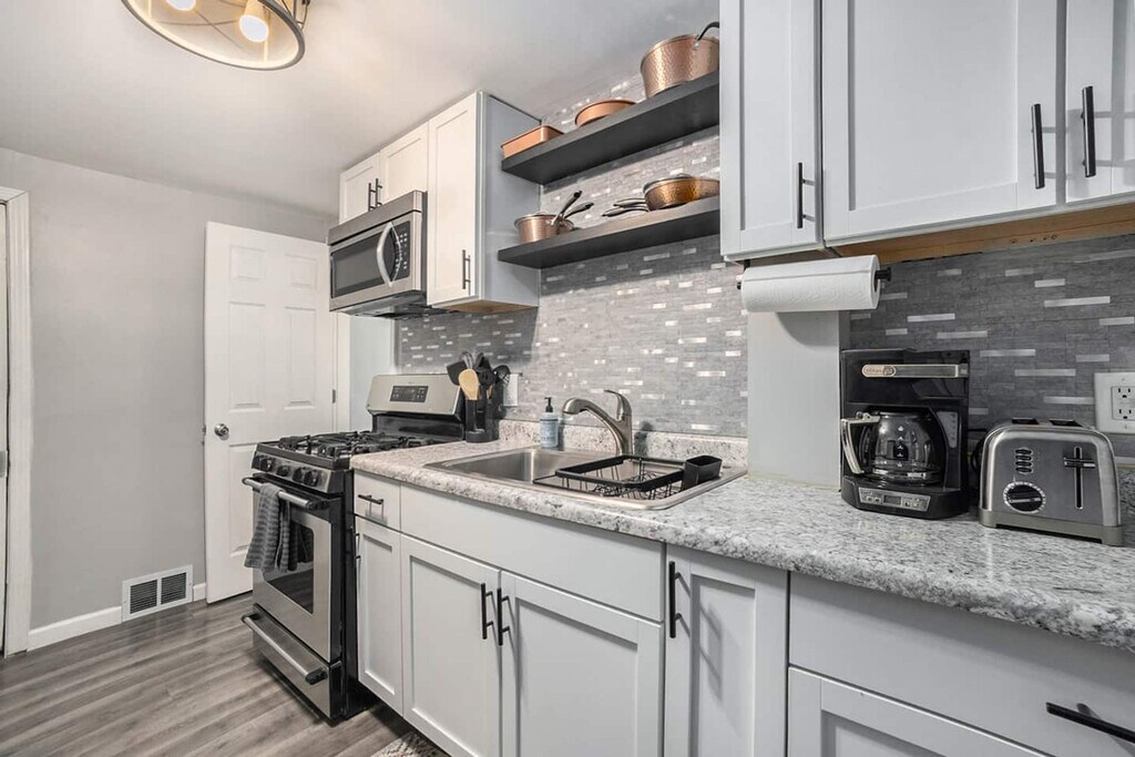 Feel at home in this renovated apartment in a safe area, less than a mile from all hospitals on Medical Mile. This unit is in the heart of Grand Rapids and within walking distance to many top locations. The kitchen is stocked with dishes, silverware, cups, mugs, wine glasses, pots and pans, kitchen utensils, dish soap and sponge, hand soap, garbage bags, a fire extinguisher, cleaning solution, cleaning rags, kitchen hand towels, oven mitts, leftover containers, a coffee pot, toaster, knives, a cutting board, and coffee. The bathroom is stocked with hand soap, towels, garbage bags, a hair dryer, and a first aid kit. The mattress has a mattress protector and the pillows have pillow protectors that are washed between each stay. Pets are allowed with a one-time $149 pet cleaning fee and $40/month/pet additional fee. This centrally located apartment is close to everything in Grand Rapids. You can be to any highway or in the heart of downtown in less than 5 minutes. The neighborhood is very safe with a lot to do in the area and is within walking distance to many restaurants and coffee shops. It is also a short distance from the historic 6th St Bridge. There are many bus stops nearby as well as numerous electric scooters and bikes for rent across the street. Also, ride-share services are readily available throughout the city. There might be some muffled white noise from the highway that you may hear from time to time. All rentals will be a minimum of 30 days. You must be 18 or older to book. [SI]
