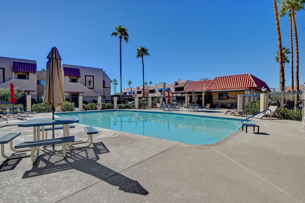 VERY CLEAN AND MOVE-IN READY one-bedroom ground-floor condo located in a gated community. This unit issituated in a quiet area away from foot and vehicle traffic. Features include recessed lighting, a spacious living roomwith a fireplace, and French doors to the patio. Ceiling fans in the bedroom and living room. Newer flooring and paintthroughout, and new and newer appliances. The bedroom features two closets, including a large walk-in closet. Community amenities include a pool, clubhouse, pickleball cournts and an RV parking area.