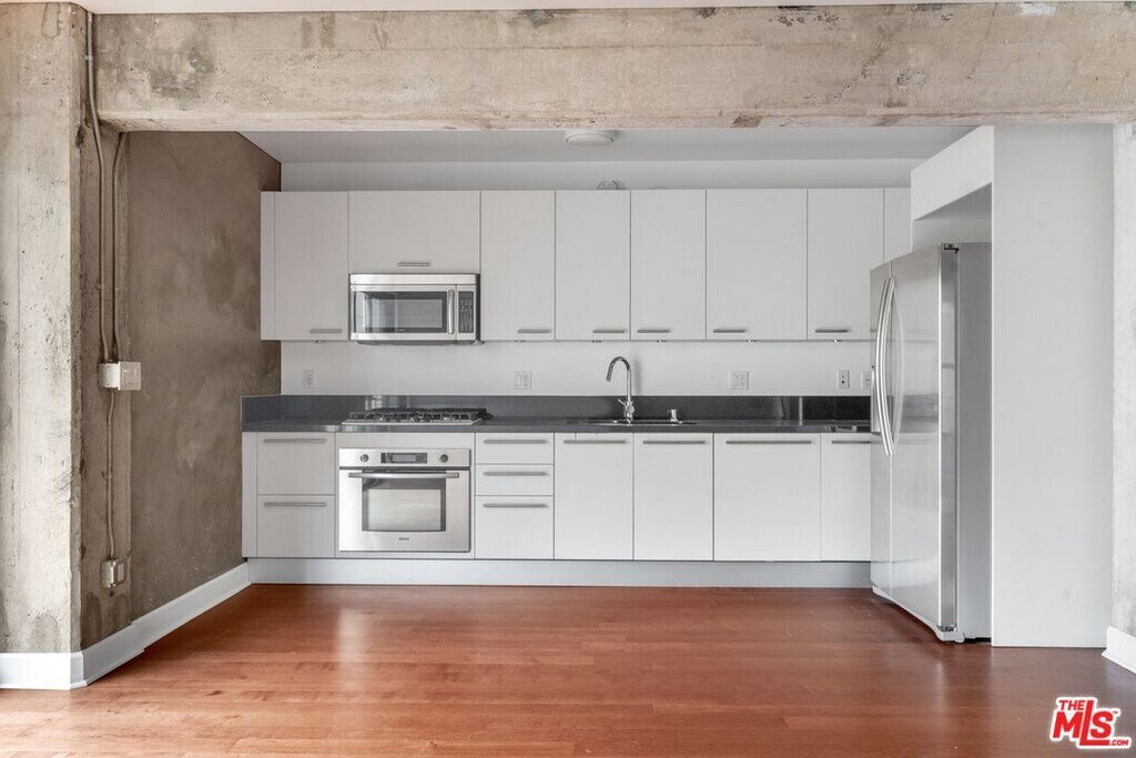 This crisp, intelligently designed residence at the El Dorado Lofts blends old-world charm with modern convenience. The bright, open-concept layout features a generous kitchen with stainless steel appliances, black granite countertops, in-unit washer and dryer, central HVAC, and a spacious bathroom with a deep-soaking tub. Additional highlights include hardwood floors, exposed concrete walls and beams, and original interior doors that speak to the building's historic character. The kitchen, dining, and living areas all enjoy sweeping views of the park and the vibrant Historic Core through expansive sliding glass doors that open to a private balcony perfect for taking in the city's energy while enjoying your own peaceful sanctuary. Once known as the Wall Street of the West," the Historic Core remains the beating heart of Downtown L.A., offering some of the best shops, restaurants, bars, galleries, and entertainment in DTLA. The building offers 24/7 controlled access, with optional on-site parking available for $250/month. A must-see!" MLS# 25621515