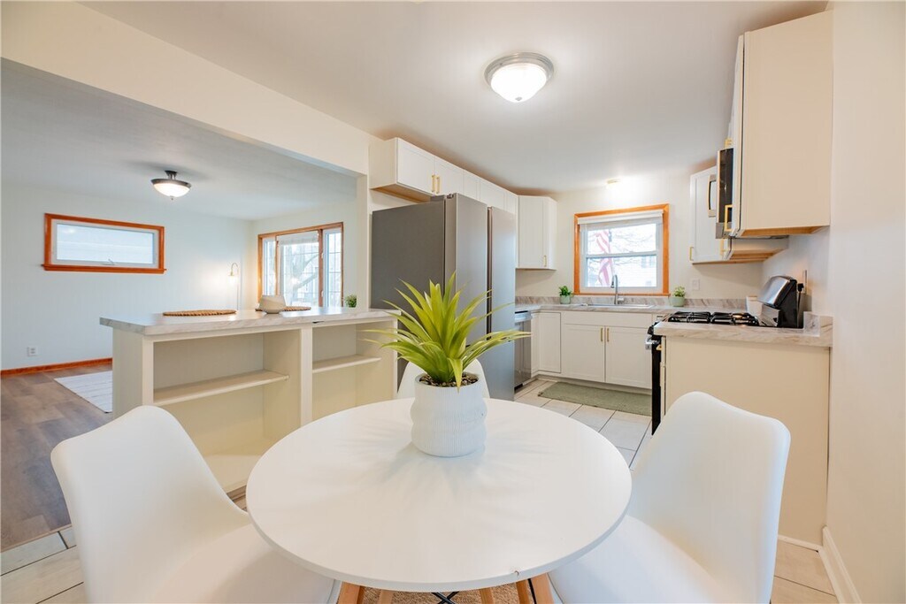 Fresh from top to bottom, this 3 bedroom, 1.5 bath single-story home in the heart of East Rochester is move-in ready. New laminate floors, a brand new kitchen with never-used appliances, new countertops, and breakfast bar. Fresh paint throughout. The main floor offers 1,104 square feet of well-laid-out living space, including a light-filled living room with a large picture window and three comfortable bedrooms with an updated full bath. The lower level is partially finished with open flex space and a convenient half bath. Central air, a low-maintenance 0.11-acre lot, and a storage shed complete the practical features. Steps from East Rochester village shops, restaurants, and local colleges. This home is ready for it's next tenant!