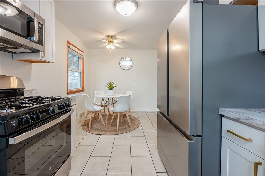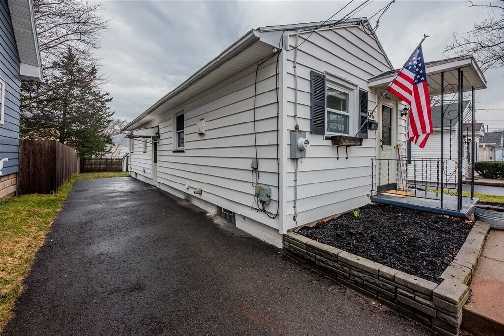 Fresh from top to bottom,this 3 bedroom,1.5 bath single-story home in the heart of East Rochester is move-in ready. New laminate floors,a brand new kitchen with never-used appliances,new countertops,and breakfast bar. Fresh paint throughout. The main floor offers 1,104 square feet of well-laid-out living space,including a light-filled living room with a large picture window and three comfortable bedrooms with an updated full bath. The lower level is partially finished with open flex space and a convenient half bath. Central air,a low-maintenance 0.11-acre lot,and a storage shed complete the practical features. Steps from East Rochester village shops,restaurants,and local colleges. This home is ready for it's next tenant!