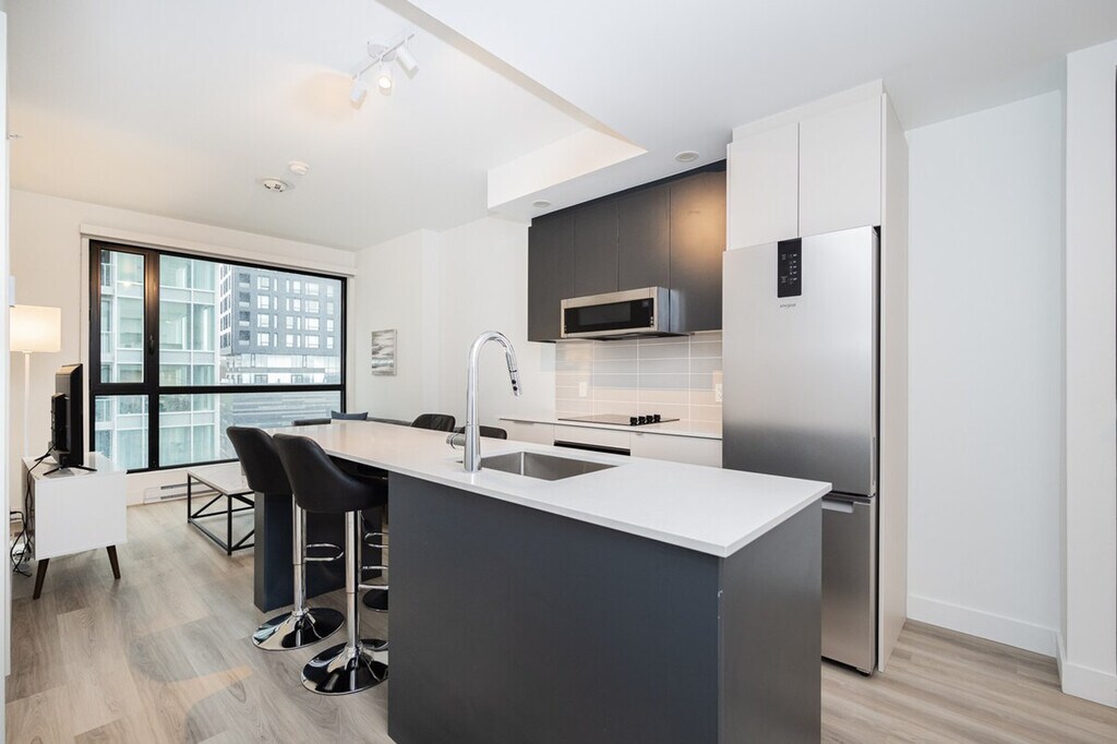 The advertised rate of C$3,548/month is the lowest available price, based on a 30 day(s) stay with a move-in date of May 8, 2026. Rates vary depending on the duration of stay, season, and other parameters. For exact pricing and additional pricing components, please visit our website and enter your desired move-in and move-out dates. The rate is applicable when billed upfront; it can be higher if billed in multiple payments. Located in the bustling downtown core of Montreal, adjacent to the Bell Centre, this property epitomizes luxury and practicality, setting a new benchmark for urban living, especially tailored for young professionals, newcomers, and students. Situated mere steps away, residents enjoy easy access to the attractions of the Golden Square Mile and the historic charm of Old Montreal. This development fosters an environment ideal for both academic pursuits and professional development. This new condo is very well located near the Bell Centre, just steps away residents have access to the Golden Square Mile’s attractions. It features 1 bedroom with a queen bed and 1 bathroom. Indoor parking with in/out privileges is available for an additional fee, depending on your length of stay. We offer a variety of cleaning services that include bi-weekly or monthly options, available for an extra charge. Residents enjoy easy access to the attractions of the Golden Square Mile and the historic charm of Old Montreal, making it an ideal location for both academic pursuits and professional development. No parties of any kind or loud noises that can alter the harmony of residents are allowed. No smoking of cannabis, cigarettes, or any kind inside the apartment, balcony, or the building. Care for your home away from home. The apartment offers shared workspaces, a conference room, and a workspace with a view, making it ideal for remote work. [SI]