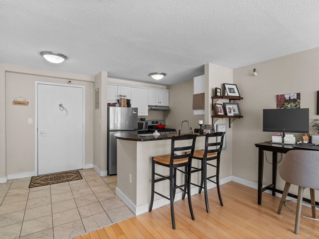 Parris Landing - Studio w/valet parking - This fully renovated designer condominium is exceptional in this luxury complex. This home offers an open kitchen with stainless steel appliances enhanced with beautiful wood cabinets and a granite breakfast bar w/additional cabinet space. Two large custom designed closets that allow for extra storage. Fabulous lighting and wood floors throughout. Large living space that features an aesthetic granite "Arch" window that reveals the history of the Navy Yard. A beautifully tiled new bath and shower. Heat & Hot water included in the rent. Tenant to pay electric/cable/internet. The outstanding amenities include: outdoor heated pool,gym w/Peleton Equipment,24i-hour concierge,professional management on site,Community Room,Amazon lockers and one valet parking space in a garage that has EV stations. Easy access to major highways,water shuttle to Financial District,Partners Bus and Logan Airport. This home is ready for 1/1/2026 move-in. MLS# 73450254