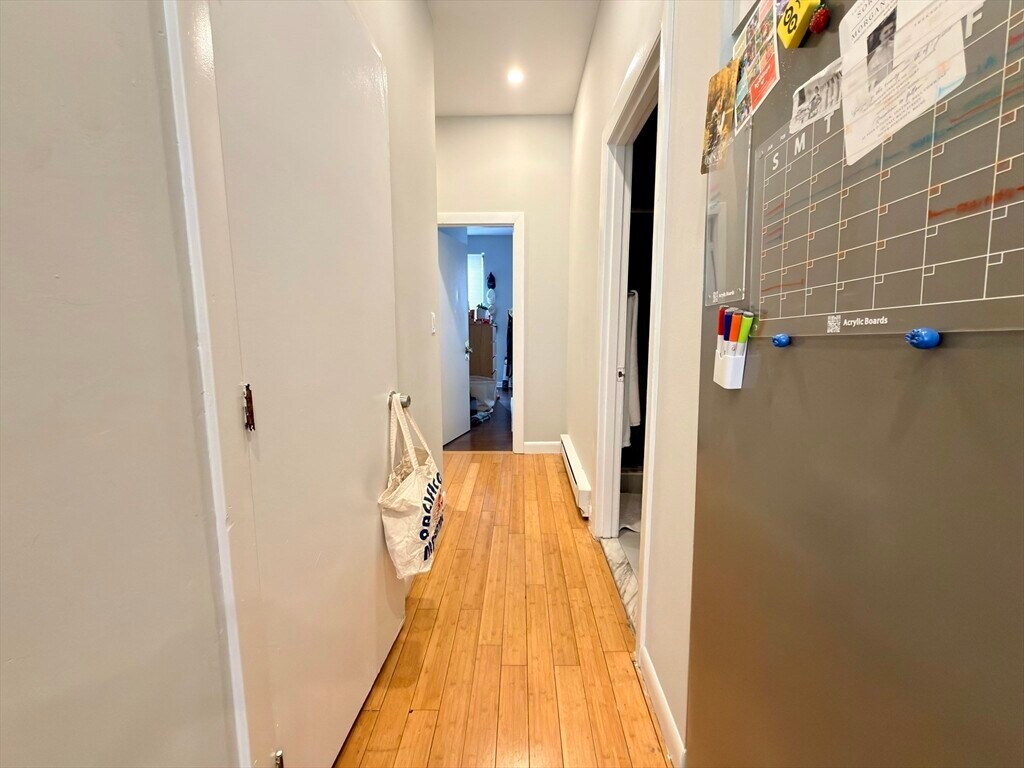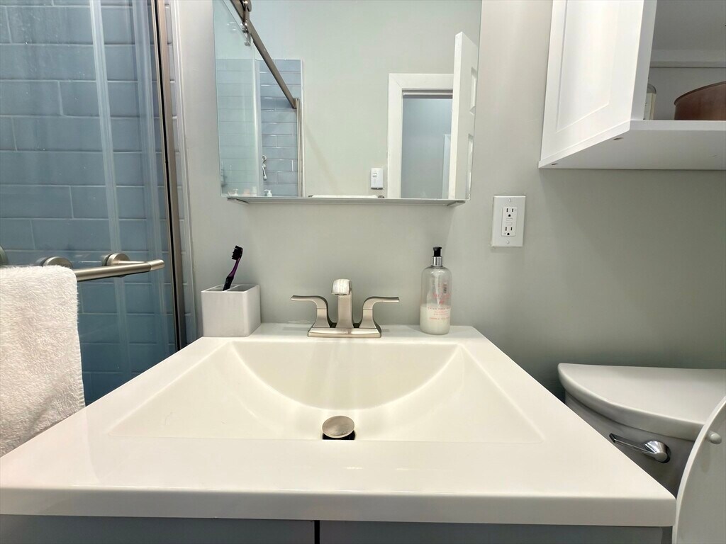 Completely gut-renovated unit featuring a modern open-concept layout with high-end finishes throughout. Bright and spacious living area with recessed lighting and luxury vinyl plank flooring. Stunning kitchen with white shaker cabinets,granite countertops,stainless steel appliances,and subway tile backsplash. Updated bathroom with sleek glass-enclosed tiled shower and contemporary fixtures. Efficient hydronic baseboard heating with digital controls. Clean,minimalist design with great usable space throughout. Convenient location close to shops,restaurants,and public transportation. Pets considered with landlord approval. Tenant responsible for electric; water and sewer included. Private off street parking available not included MLS# 73500578