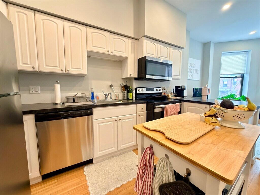 Beautifully renovated 3-bedroom apartment in a classic Boston brownstone featuring high ceilings,hardwood floors,and abundant natural light throughout. The unit offers a modern open-concept kitchen with stainless steel appliances,white cabinetry,and a spacious living area ideal for entertaining. Generously sized bedrooms with great closet space,along with a fully updated bathroom and in-unit laundry for added convenience. Located in a prime area close to public transportation,shops,restaurants,parks,and universities,with easy access to major highways. Off-street parking available,Available 9/1. MLS# 73500806