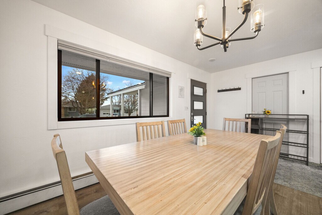 This beautifully remodeled three-bedroom, one-bathroom house in a charming fourplex offers the perfect blend of modern living and comfort.**Property Highlights:**- **Spacious Open Concept:** Experience a bright and airy layout that seamlessly combines the living, dining, and kitchen areas, perfect for entertaining or relaxing with family.- **Bedrooms:** Three generously sized bedrooms filled with natural light, providing ample space for rest and relaxation.- **Modern Bathroom:** A stylishly updated bathroom, featuring contemporary fixtures and finishes.- **Garage and Parking:** Enjoy hassle-free parking with a dedicated garage and plenty of additional parking space available for guests.- **Outdoor Space:** A great front yard invites you to enjoy the outdoors, whether for gardening or simply unwinding in the fresh air. The property also features both a front and back door for convenient access.- **Flexible Furnishing Options:** Choose to have the home furnished or unfurnished, tailored to your personal preferences and needs.- **All-Inclusive Rent:** For $3,000 per month, all utilities are included—water, sewer, trash, electric, and even high-speed internet—making budgeting simple. 1 year lease available, and one small pet may be possible with a pet deposit.For more information or to schedule a viewing, please contact us today!