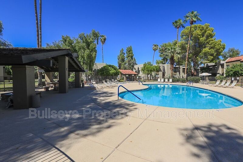 Experience comfortable Arcadia living in this cozy two-bedroom, ground-floor condo. Enjoy the convenience of in-unit laundry, covered parking steps from your door, and a spacious kitchen with ample storage and all appliances. Entertain or relax on your private, shaded patio, perfect for summer barbecues. The primary bathroom boasts a new shower/tub, and the community offers a sparkling pool and lush, mature landscaping for a resort-like feel. Terms: $45 Application fee per adult (18 years or older) $40.00 monthly resident benefit package processing fee (includes bimonthly HVAC filter install) $250 one time admin fee Renters insurance required Pets upon approval, call first Equal housing opportunity Amenities: community pool
