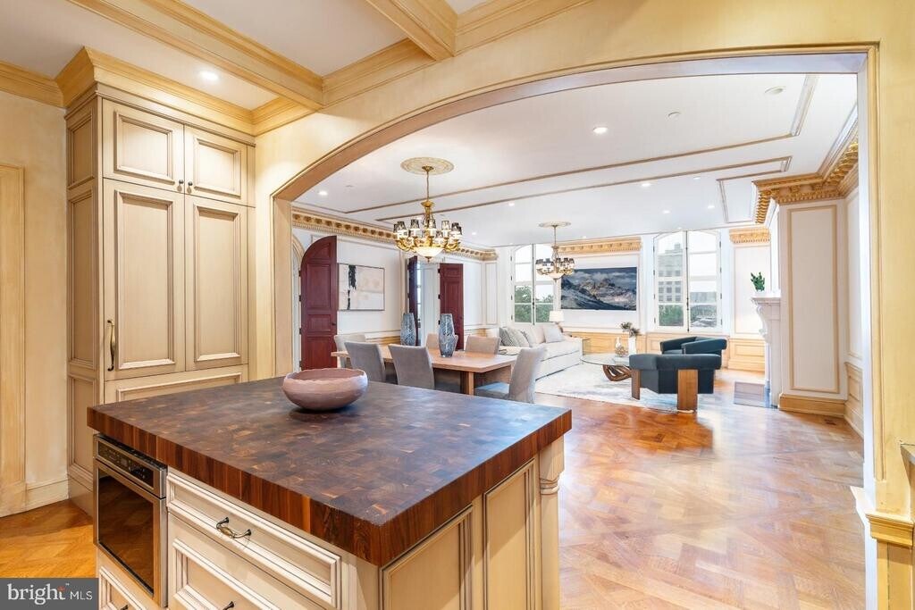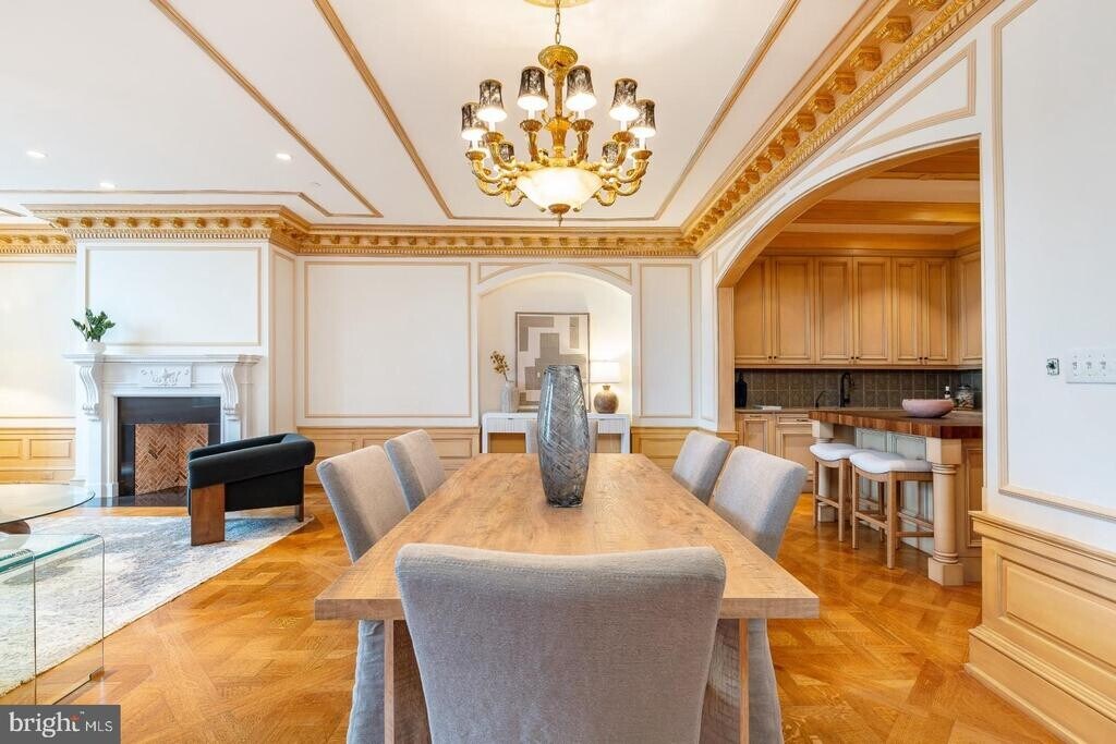 A Grand Residence Reimagined – The Bank Building 421 Chestnut St Unit 401, Gracious in scale and rich with architectural detail, Unit 401 at The Bank Building offers a rare combination of historic craftsmanship and crisp, modern updates. Spanning 3,068 square feet with soaring ceilings and a sweeping southern exposure overlooking Philadelphia’s historic core, this three-bedroom, two-and-a-half-bath residence has been freshly painted, professionally staged, and thoughtfully refined to highlight its neoclassical elegance. A custom double-door entry opens into a dramatic marble-clad foyer, where Carrara and Bardiglio flooring meet a coffered Venetian plaster ceiling edged in authentic gold leaf. Throughout the home, fine moldings trim each ceiling, reinforcing the refined character of the architecture. The expansive great room offers light, volume, and warmth, framed by Versailles-pattern oak floors, a custom marble fireplace mantel, and oversized soundproof windows that capture panoramic views of iconic landmarks such as the Second Bank of the United States. A newly positioned writing desk beneath the southern-facing window provides a daily connection to the city’s storied past. The adjacent Joanne Hudson-designed kitchen is a chef’s showpiece, outfitted with paneled Sub-Zero refrigeration, a Wolf dual-fuel range, Miele dishwasher, designer tile backsplash, and a solid walnut island that anchors the space for both everyday use and elegant entertaining. The private bedroom wing begins with the primary suite: a tranquil retreat with a generous sitting area, a custom-outfitted closet, and a spa-caliber limestone bath. The bath features a whirlpool soaking tub, a double vanity, and an oversized frameless glass shower equipped with eight showerheads for a true luxury experience. Two additional bedrooms offer flexibility for guest accommodations, a home office, or both. A full hall bathroom serves this wing of the home, providing privacy and convenience separate from the primary suite. Recent upgrades include fresh paint throughout, removal of dated wallpaper, ceiling touch-ups, drapery removal, and full professional staging, allowing the home’s natural light, scale, and detailing to shine through. As a resident of The Bank Building, you’ll enjoy complimentary access to the state-of-the-art fitness center at the adjoining Renaissance Hotel, along with optional à la carte services such as valet parking, room service, and housekeeping. Secure building entry, a concierge-level doorman, and elevator access offer both convenience and discretion. Located between Old City and Society Hill, The Bank Building stands at the intersection of charm and connectivity—with a Walk Score of 99 and easy access to I-95, I-76, the Ben Franklin Bridge, 30th Street Station, and Philadelphia International Airport. Art galleries, fine dining, historic sites, and boutique shopping are all just steps from your front door. Unit 401 isn’t just a residence—it’s a statement of enduring elegance, intelligent design, and inspired city living in one of Philadelphia’s most iconic boutique buildings. This property is also available for sale.