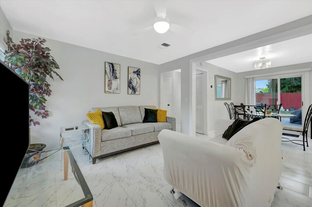 Relax and feel at home in this bright and modern 3-bedroom, 2-bathroom home in Tampa, just minutes from downtown, beaches, and shopping. This home is ideal for families or friends seeking convenience and comfort for their Florida escape. The home features a fully equipped kitchen, cozy living spaces, and a fenced backyard with outdoor seating furniture, a dining table, and a BBQ grill. Enjoy the comfort of TVs in every bedroom, air conditioning, ceiling fans, hotel-quality linens, extra pillows, and hangers. The kitchen includes a range stove, oven, microwave, toaster, coffee maker with complimentary coffee, and a full fridge. Both bathrooms include towels and basic essentials, with one bathroom offering two sinks with vanity, a shower, and a toilet, and the other featuring a vanity with sink, a bathtub/shower combo, and a toilet. Located in the peaceful Temple Crest area, this home offers a quiet, residential vibe while keeping you close to everything Tampa has to offer. Busch Gardens Tampa Bay is approximately 5 minutes away, MOSI (Museum of Science & Industry) is about 4–5 minutes away, the University of South Florida Botanical Gardens is around 9 minutes away, and Lowry Park Zoo is about 11 minutes away. AdventHealth Tampa is approximately 7 minutes away. Easy access to major roads makes exploring Tampa a breeze, with downtown, Busch Gardens, museums, and local attractions just a short drive away. Ride-shares and public transit are nearby for extra convenience. Nearby parks and outdoor spaces include Lettuce Lake Park, Rowlett Park, and Water Works Park. Restaurants and cafés in the area include Coasis Restaurant & Bar, Acropolis Greek Taverna, and Ulele. Tampa International Airport is approximately 25–30 minutes away. A digital rental agreement must be signed and completed prior to arrival, including providing a photocopy of a legal ID and a verification selfie. Pets are not allowed, and unauthorized pets will incur a penalty of $400 per pet and possible cancellation of the remainder of the reservation without a refund. Service pets stay for free. No smoking or vaping is allowed inside, and if cleaners determine smoking has taken place, a $250 penalty will be charged. Lockouts (except in the case of a lock dying due to batteries) will incur a fee of $125 for helping gain re-entry, or $200 if the lockout is outside regular business hours (Mon – Fri, 8 AM - 8 PM). Unless requested and approved in advance in writing, lethal weapons are not allowed on the property, and a violation of this rule will result in immediate removal from the property along with no refund and a penalty of $250. The booking guest must be at least 21 years of age to check-in. Check-in time is 4 PM EST and checkout times are 11 AM EST. Unauthorized late checkouts or early check-ins will result in a charge of $35 for every 30 minutes (rounded up). Includes a workstation desk for remote work. Every reservation includes a damage waiver program covering up to $500 in accidental damage during your stay. While we regularly treat for pests, occasional insects may appear due to the Florida climate, and no refunds are issued for pest sightings, though we’re always happy to address concerns. [SI]