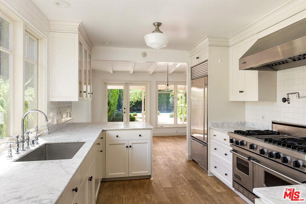 - Designer-done single-level Traditional with expansive backyard and pool in coveted Toluca Lake location. and city of Burbank services. This gated 3 bedroom + 3 bath home + bonus room / office and with guest house showcases wide-plank oak floors throughout, multiple fireplaces, custom built-ins, and a chef's kitchen with top-of-the-line appliances. The outdoor living is exceptional: a deep, private yard wrapped in mature landscaping, a sparkling pool set back for maximum privacy, an outdoor kitchen, and multiple patio areas perfect for entertaining. All just minutes from Whole Foods, The Studios, and the shops and restaurants of Toluca Lake, Studio City, and Burbank. Listing provided by: Greg Harris of Compass LA State License 1405806 Listing posted by Fernando Valen [SYNDID 4135266 09202025]