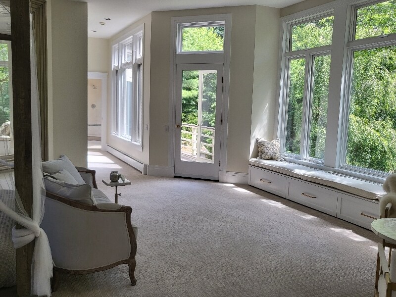 This 6,300+ square foot home with 5 bedrooms, 4.5 baths offers an extraordinary luxury lifestyle amidst a serene surrounding landscape with walls of glass bringing the outside in. The custom door of glass opens to a magnificent, welcoming hard wood-floored reception hall. Upon entering the sleek entryway leads you to a contemporary formal foyer. A few steps in reveal a stunningly bright great room, floor to floor-to-ceiling windows with French doors provide a sun-drenched space from the rich hardwood floors to the coffered ceiling. Master chefs and amateur cooks alike will treasure the simple elegance and thoughtful design of the bright gourmet kitchen stretching the entire width of the home. The main suite extends Feel the pride of calling this Contemporary estate home as you approach via scenic and beautifully landscaped lot that stretches 1.86 acres for ultimate serenity and privacy. The overall layout of the home is open and bright, creating a luxuriously welcoming and elegant contemporary atmosphere.