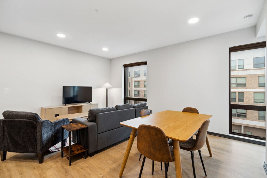 Feel at home in this spacious two-bedroom apartment located in the heart of Mass Ave. This apartment features inviting living areas, a fully equipped kitchen, and a bathroom complete with toiletries. You can also enjoy the resident roof deck, resident clubroom, in-unit washer and dryer, and smart TVs with streaming apps installed. Complimentary coffee is also provided. Located in the historic Lockerbie Square district, this downtown spot offers charming cobblestone streets, 19th-century architecture, and easy access to cultural landmarks like the Athenæum. You're just a short walk from Mass Ave’s vibrant mix of restaurants, bars, and boutiques. The Indiana Convention Center is 0.3 miles away, Lucas Oil Stadium is 0.5 miles away, Old National Centre is 0.6 miles away, and Saint Mary's Catholic Church and the Phoenix Theatre are both 0.6 miles away. Smoking of any kind is not permitted within or outside of the apartment, including balconies, patios, or common and/or parking areas. Any sign of smoking is a violation of the stay agreement, which may result in immediate termination and recovery fees beginning at $500. There is a $200 penalty for removing smoke detectors and a $200 penalty for lost key fobs. No outside guests are allowed without permission. One towel is provided per guest per stay. A valid photo ID is required to complete the booking. Guests must agree to not disturb neighbors at all times during the stay and must observe quiet hours from 9pm-8am each day. Check-in is at 4 PM and check-out is at 11 AM (with a $75/hr late fee). [SI]