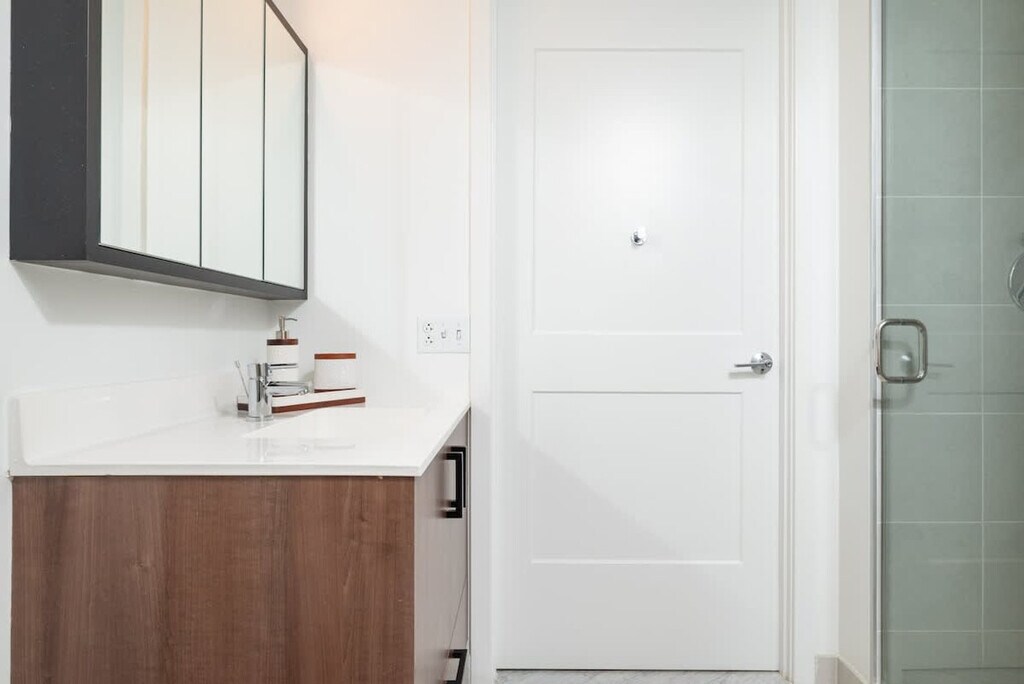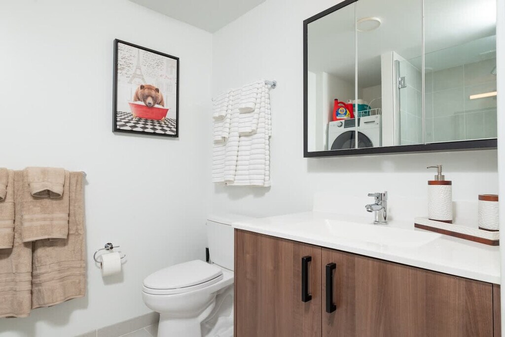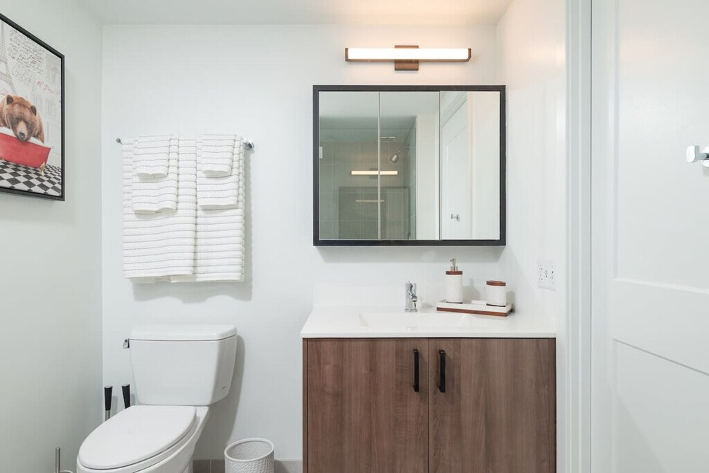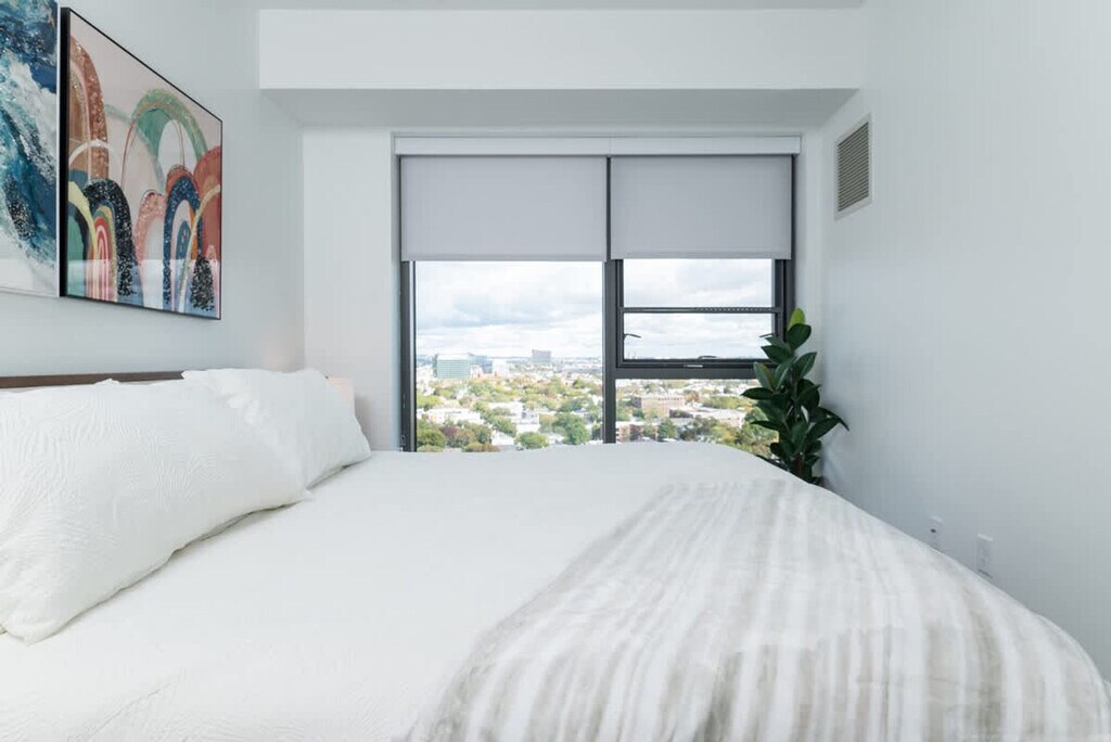 Feel at home in this luxurious 1-bedroom, 1-bathroom apartment located in Central Cambridge Kendall Square, a vibrant hub for living, working, shopping, and entertainment in the Boston/Cambridge area. The apartment offers stunning views of the Charles River and the Boston skyline, and is situated in a building with a beautiful lobby featuring museum art, a mezzanine terrace with a garden, and an elevator. The master bedroom features a deluxe king-size bed with a memory foam mattress, custom linens, a fluffy duvet, plush pillows, two night tables with lamps, a clock radio, a dresser, and spacious closets. The living room includes a sofa bed, two club chairs, an entertainment center with a flat panel LCD TV, a DVD/VCR player, a CD stereo system, a dining area with seating for four, and a work desk with a lamp. The gourmet kitchen is fully equipped with Shaker-style birch cabinets, granite countertops, and full-size Energy Star GE stainless steel appliances, including a four-burner stove, oven, microwave, dishwasher, and side-by-side refrigerator with an ice maker. Coffee, tea, and sweeteners are provided. Parking is free for monthly guests, while others can access the underground garage for $45 per day. The building offers a fitness center, business center, club room with video conferencing and a caterers’ kitchen, meeting rooms with a 58" Ultra HD screen and surround sound, and a garden with Wi-Fi. Located in Central Square, this apartment is just 10-15 minutes away from Kendall/MIT, Harvard Square, Downtown Boston, Back Bay, Beacon Hill, Seaport District, Logan International Airport, Longwood Medical Center, MGH, Boston Medical Center, and Tufts Medical Center. The neighborhood offers excellent walkability and access to public transportation, making it easy to explore the best of Boston and Cambridge. Quiet hours are from 9pm to 9am. No smoking and no events are allowed, with a $1000 fine for violations. Guests are required to close and lock all windows and doors when leaving. All guests over 18 must submit a copy of their ID. Please do not interact with building staff or maintenance team; communication should be through the host. A $500 fine will be charged for each day this rule is broken. Food should not be kept in the bedroom, and all leftovers must be disposed of outside the apartment. The apartment includes a work desk with a lamp and offers both wired and wireless Internet access, making it ideal for remote work. A laptop computer is not included. [SI]