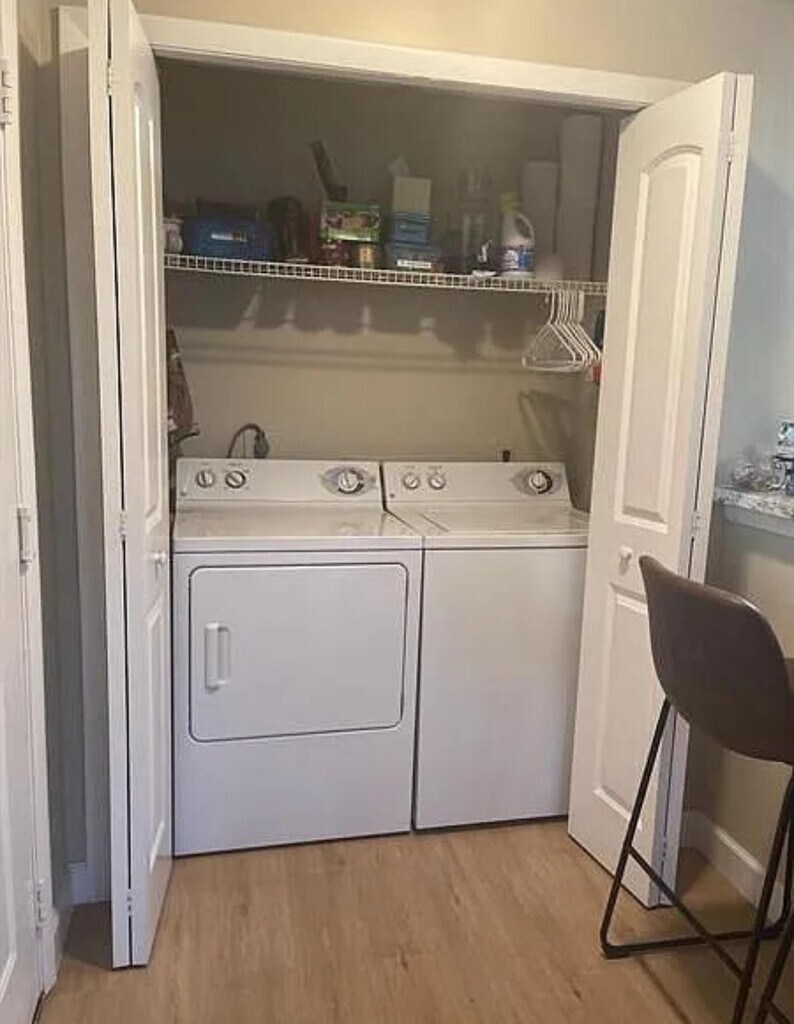 Nice and private unit with pool and garden views. Nice spacious layout with wood flooring and vaulted ceilings. Convenient full size washer and dryer and balcony with storage closet. Safe and secure gated community with reserved parking and full ammenities like gym, club house and tennis courts. Pets are always welcomed.
