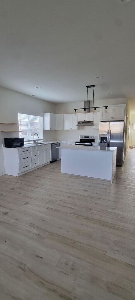 Welcome to a beautiful home for a family! This stunning new building boasts modern elegance and comfort, with high ceilings that create a sense of lightness and spaciousness throughout the space. The beautiful quartz countertops in the kitchen and bathrooms are durable and stylish! Heated floors in both bathrooms! The brand-new flooring complements the interior of each room, giving the home an aesthetically pleasing appearance. The large kitchen island, perfect for everyday life, is fully equipped with all new stainless steel appliances. All appliances are new! This home features a spacious storage room with a walk-in closet and a convenient 1-car garage. The elegant built-in lighting and cedar trim add a touch of luxury to every room. Enjoy the tranquility of a location near a lake, schools, and shops! Bus stops nearby. The backyard is lined with river rock, creating a cozy atmosphere. Additionally, there is a small shed in the backyard where you can store your tools. This home is ready and waiting for you! We accept housing management (Section 8). Home insurance is required by the tenant.Come and see it today!