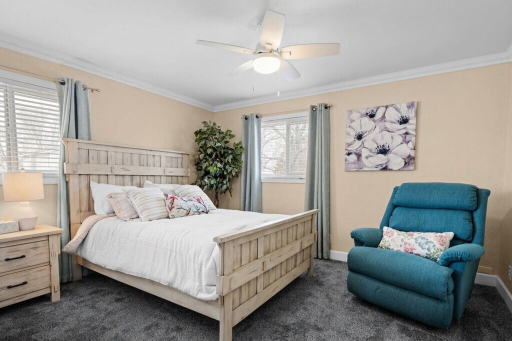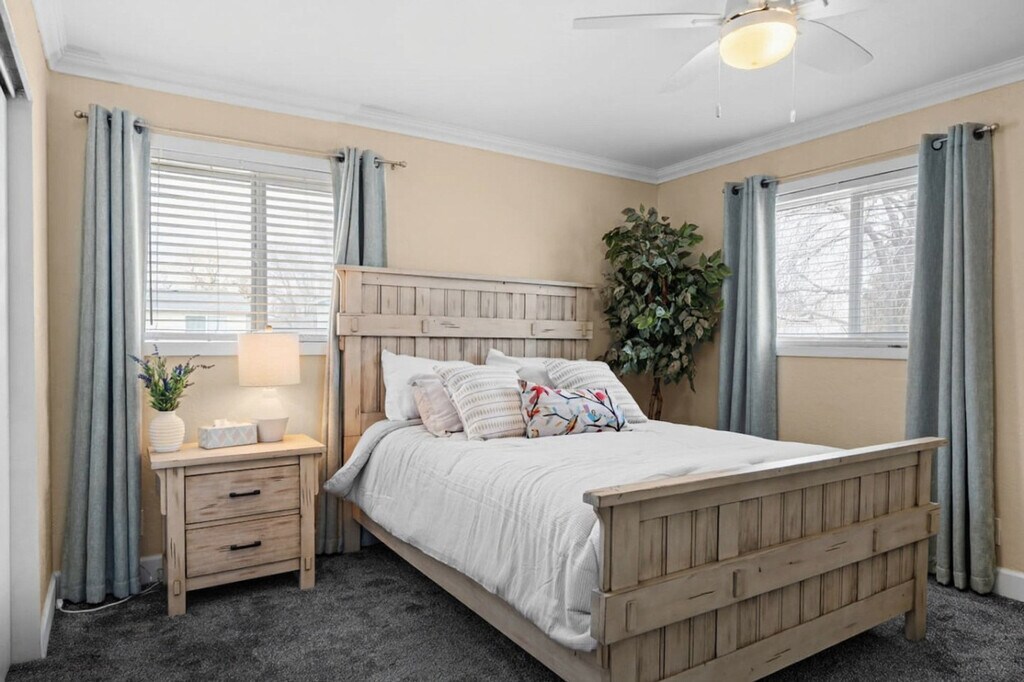 Feel at home in this charming 3-bedroom home in Idaho Falls, a quiet and convenient base just minutes from parks, shopping, and the Idaho Falls Idaho Temple. This home features two separate living areas, perfect for relaxing or entertaining. The main floor features a bright and airy space with a large comfortable couch, smart TV, and large windows for natural light. Downstairs, you’ll find a second living space with leather sofas and a giant connect four game, ideal for movie nights and gathering with family and friends. The fully stocked kitchen includes modern appliances, a coffee station, and all essentials needed to save money while dining in. A large dining table provides a great space for shared meals and game nights. There are 2 full bathrooms (no tubs) stocked with fresh towels and a full-size washer and dryer in the home. Step outside into the large backyard with a giant deck ideal for gathering. This huge backyard is a perfect place for relaxing or playing outside. The fireplaces are decorative and not available for guest use. This home offers a shared driveway with a neighbor, but guests may use the garage for storage and park two cars in the driveway. Pets are welcome with a fee of $10 per pet, per day. This home is the perfect stop on the Grand Teton Loop, with easy access to Yellowstone National Park (approximately 119 miles), Grand Teton National Park (approximately 105 miles), Grand Targhee Resort (approximately 93 miles), and Kelly Canyon Ski Resort (approximately 36 miles). Located in a peaceful Idaho neighborhood with easy access to nature trails, local restaurants, and nearby attractions, there’s something for everyone to enjoy. This location is perfect for those seeking relaxation and attending events in Idaho Falls. Stop in for an economic option when headed to Yellowstone and the Teton National Park. Nearby attractions include Shelley High School (0.4 miles), Mountain America Center Idaho Falls, Idaho Fall Spud Kings home arena (9.3 miles), Idaho Falls Temple LDS Temple (10 miles), Snake River Greenbelt (9 miles), Yellowstone Bear World (34 miles), Grand Teton National Park (105 miles), Yellowstone National Park (119 miles), Jackson Hole Wyoming (109 miles), Grand Targhee Resort (approximately 93 miles), and Kelly Canyon Ski Resort (approximately 36 miles). A car is recommended for getting around the area. Smoking or vaping is not allowed on the premises. A $200 per day fee will be assessed for each day of the reservation if it is found that guests have been smoking or vaping on the premises. For unauthorized pets, a $250 fee will be assessed. [SI]