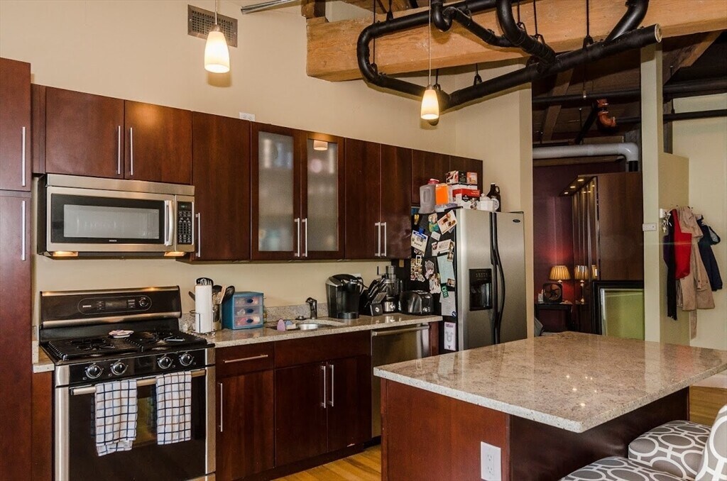 Located in the former home of the famous Charleston Chew factory,history buffs will appreciate this beautiful,modern condo blending the perfect contemporary finishes with warm,inviting touches. Enjoy lofty sand-blasted beamed ceilings,a wide open plan with hardwood flooring,exposed brick walls,beautiful contemporary finishes,and tons of natural light through over-sized windows. Gourmet kitchen with granite counter-tops,stainless steel appliances,and large kitchen island. Living room with gas fireplace and exterior balcony. One large bedroom plus a larger bonus room which could be a study,nursery,office,or second bedroom. Central heat and AC,in-unit laundry,2 deeded parking spaces. Just a stone's throw from Encore Casino,Assembly Row,Sullivan square,Charlestown,North End,MGH,MIT,Harvard,Cambridge and Downtown Boston! MLS ID 73506267