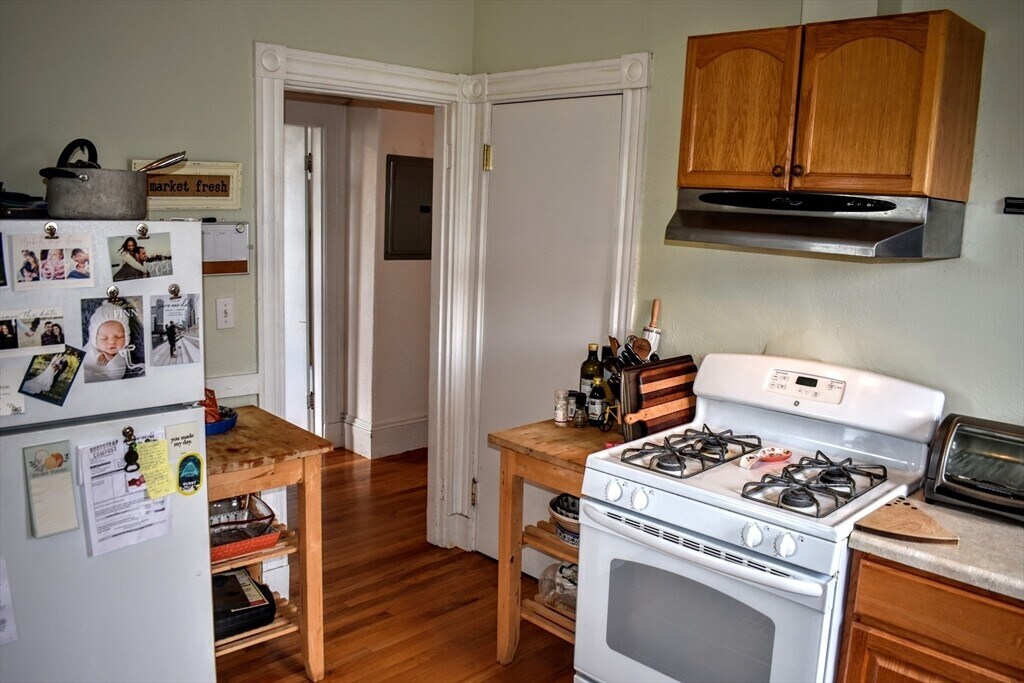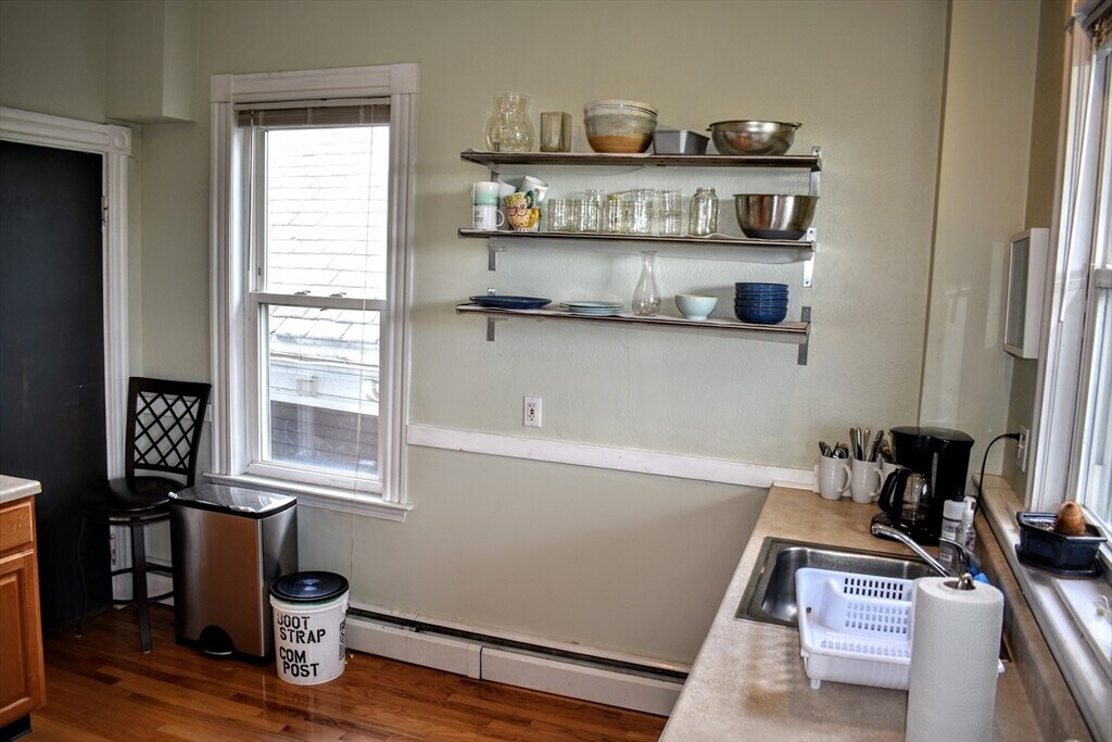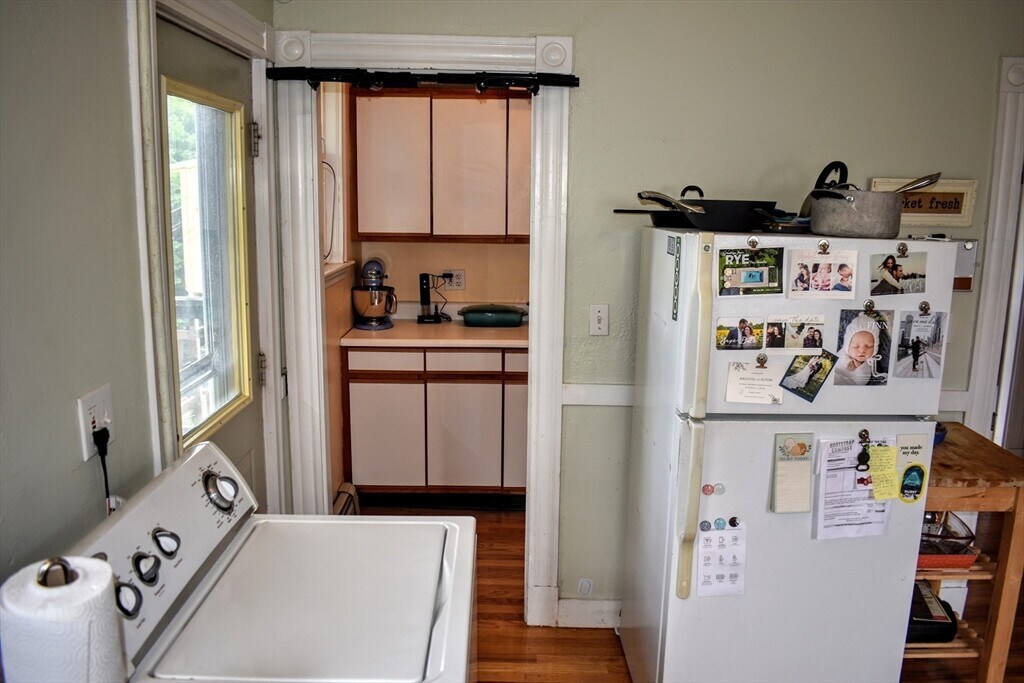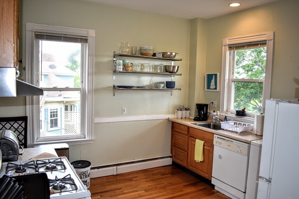 TREE TOP VIEWS IN HIP HYDE SQUARE! AVAIL JAN !st... Beautiful 2 Bedroom unit with gleaming wood floors throughout. Living room with decorative fireplace mantel, pocket doors that connect with the dining room and private access to a spacious front porch. Ceramic tiled bathroom and eat in kitchen with gas stove, dishwasher, and disposal plus a spacious pantry for even more storage. WASHER & DRYER in unit. Kitchen connects with private back porch with incredible views over Jamaica Plain and all the way out to the Blue Hills! Master bedroom with decorative fireplace and gorgeous stained glass window. Second bedroom with great light. Basement Storage. Located just 500-600ft from Hyde Square, enjoy shopping at Whole Foods, Tres Gatos, and pubs like the Brendan Beehan. Additionally, Jamaica Pond is only 1000ft or so nearby, Stonybrook T (Orange Line) is about 600ft, and Bus #39 is 500ft.