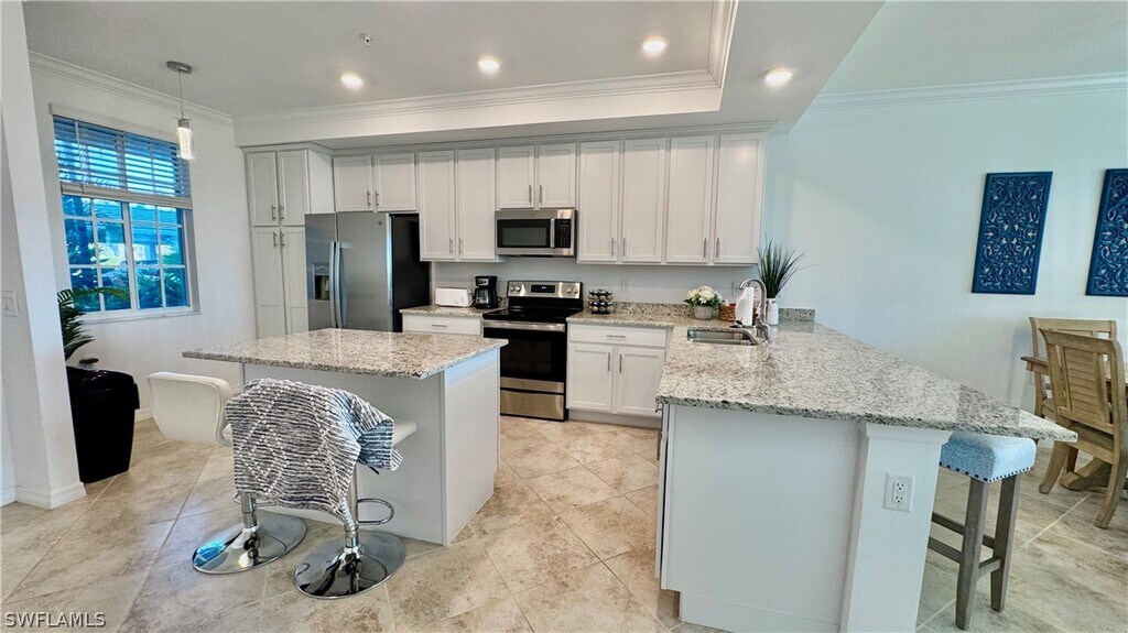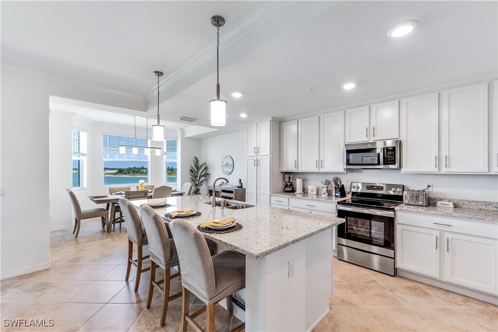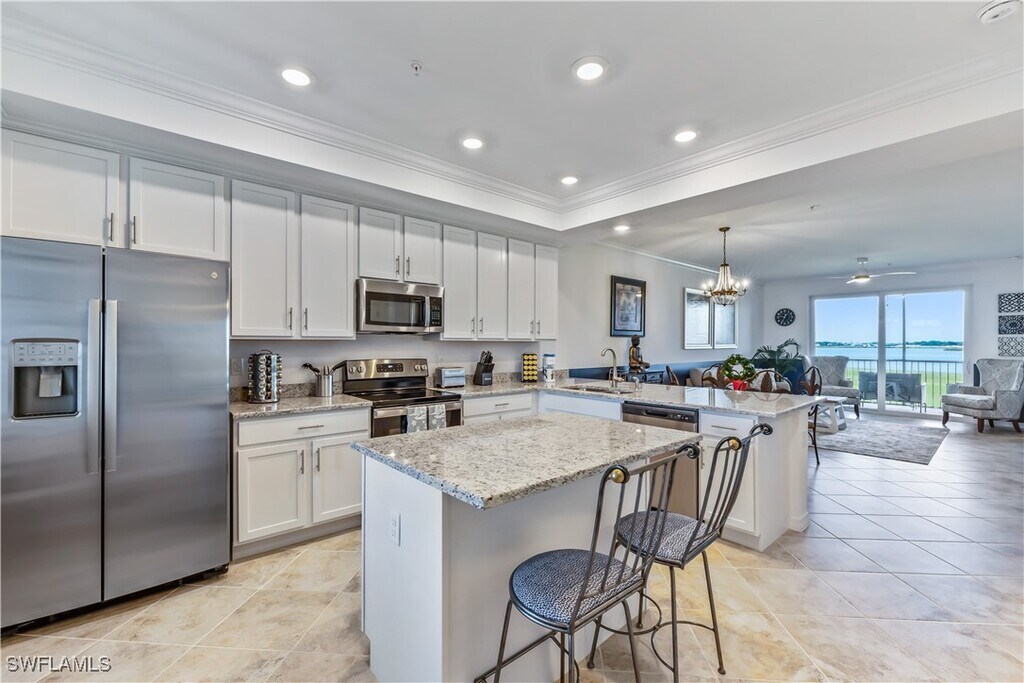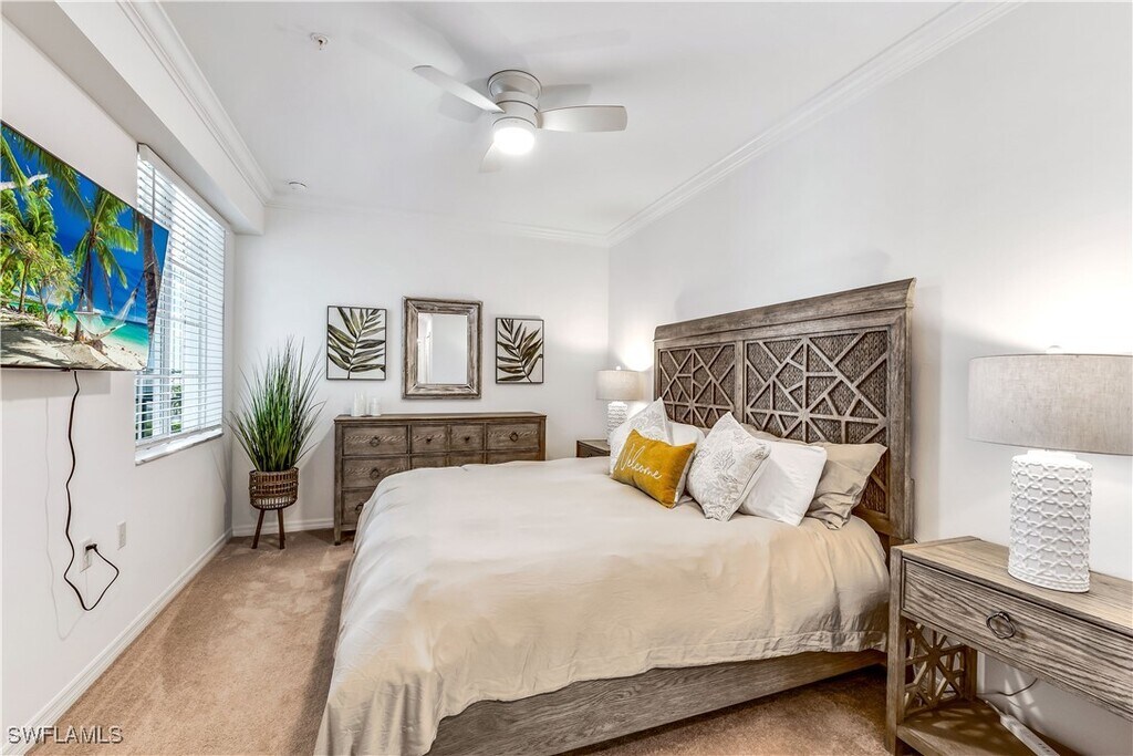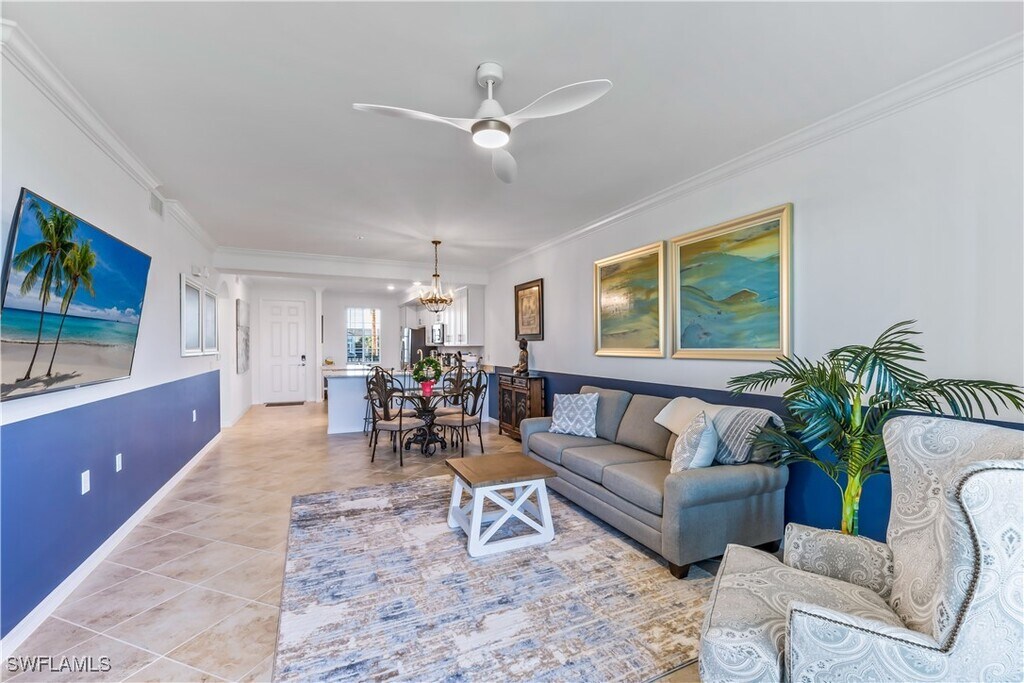 The Birkdale model,located on the first floor,offers the perfect blend of convenience and luxury,just a short walk from the clubhouse,tiki bar,and restaurant. Picture yourself relaxing at the Spa or enjoying a leisurely lunch by the pool at the Watershed Grill. This beautifully decorated,private retreat includes bundled golf for an additional fee,and features two spacious bedrooms,two full bathrooms,a covered parking space,and a large storage unit conveniently located just outside your front door. The unit boasts an elegant design. Dining area,owner’s bedroom,and kitchen,enhanced by tasteful crown molding. The expansive great room is perfect for entertaining guests,while the Owner’s Suite offers a walk-in closet and a walk-in shower for added comfort and convenience. Step onto the lanai,a serene outdoor space featuring a privacy screen,brick decking,and covered seating,all overlooking the golf course. Enjoy stunning water views of Founder’s Square and spectacular sunsets. Babcock National offers a dynamic lifestyle with a variety of exceptional amenities,including an 18-hole golf course designed by Gordon Lewis,a resort-style pool,a state-of-the-art fitness center with a sauna,an outdoor bar and grill,a pro shop,and tennis and pickleball courts. The clubhouse exudes a charming coastal country vibe. This property offers the ultimate in Florida living.