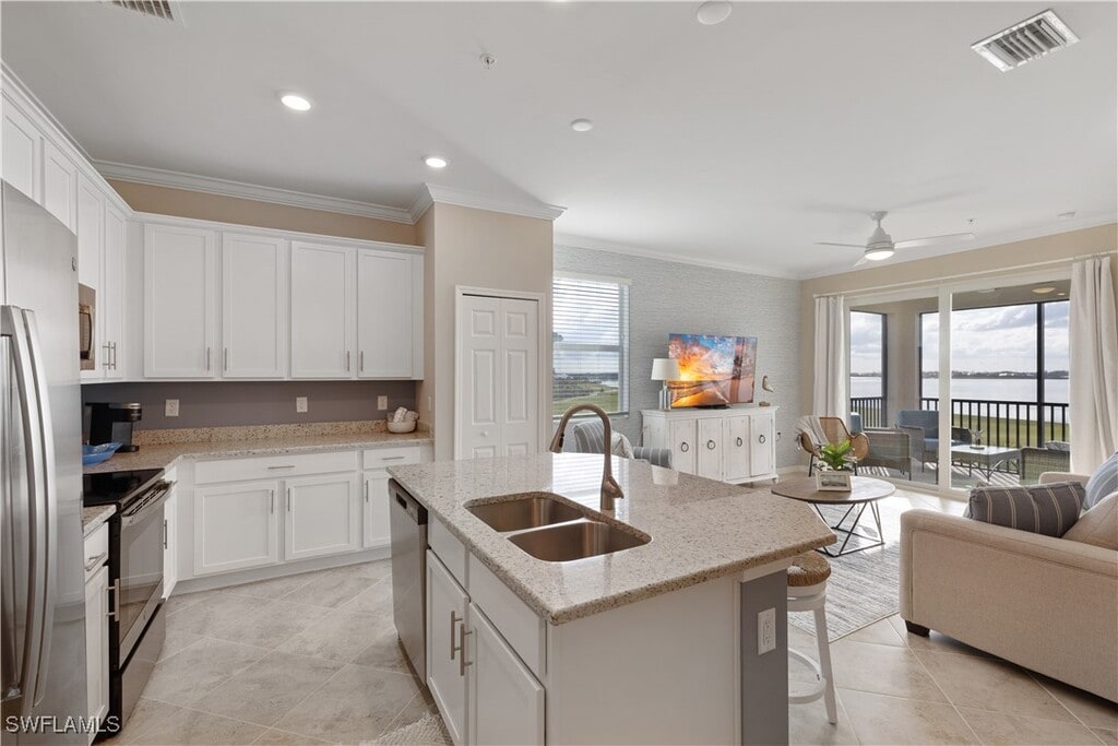 This 3rd Floor,End Unit,Carolina Terrace home delivers an ideal split-bedroom floorplan with just over 1,300 square feet of living space. The owner's suite boasts two walk-in closets & an en-suite bath. Guest bedroom has an adjacent full bathroom. Open concept living space/kitchen island,formal dining space & living area with access to the screened lanai. This condo is located within walking distance right across the street from the Brand New,Resort Class Amenities. With "Million Dollar" views of Lake Babcock,the owners have thought of everything. The Babcock National Amenity Center includes a Clubhouse,Restaurant,Multiple Tennis & Pickleball Courts,Resort Style Pool,Lap Lane Pool and Hot Tub / Spa. There is also a Tiki Bar & Grill,State-of-the-Art Fitness Center,Aerobics Studio,Outdoor Yoga Lawn,Steam Sauna and Day Spa,all for your use. The Babcock National Lifestyle Coordinator is on site daily and plans weekly Community Social Activities & Food Trucks for all of the residents to enjoy. (The Clubhouse & Dining Restaurant will be Opening in the future) Along with these amenities,Downtown Babcock Ranch gives you the Lakehouse Restaurant,Slaters Provisions,Coffee Shop and Ice Cream Store,Security office,walking trails,and many small businesses just a short walk away.