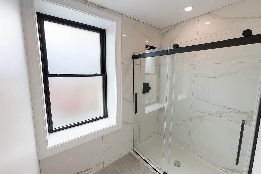 Experience elevated downtown living in this spacious, fully renovated one-bedroom apartment at 434 Lackawanna Ave. The unit features real hickory hardwood floors, and a dramatic full-slab marble accent wall that anchors the open-concept living area.The kitchen showcases white cabinetry with black hardware, black quartz countertops, and a center island equipped with a sink, dishwasher, and built-in wine cooler.The bedroom is enclosed with a floor-to-ceiling glass partition, allowing natural light to flow throughout the space while maintaining privacy. The bathroom features polished gray porcelain tile, a walk-in glass shower, and modern lighting that completes the clean aesthetic.Enjoy in-unit laundry, central air conditioning, keypad entry, stainless steel appliances, and fiber-ready internet.All utilities are included—offering a truly effortless living experience in a premium downtown apartment built for comfort, convenience, and style.