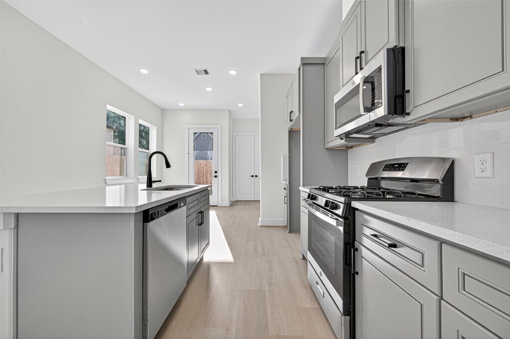 Luxury New Construction! This stunning home offers 4 spacious bedrooms,3.5 baths,and modern finishes throughout. The open-concept main living area features a bright dining space,a chef’s kitchen with 42” shaker cabinets,quartz countertops,stainless steel appliances,and a gas range,seamlessly flowing into the family room. The primary suite with an elegant bath is conveniently located on the first floor,along with a secondary bedroom with its own full bath and a half bath for guests. Upstairs,you’ll find two generously sized bedrooms,a full bath,and a versatile game room. Large windows bring in natural light,while energy-efficient features keep utility costs low. A cozy backyard with privacy fencing provides the perfect retreat. Located close to major highways,shopping,and dining,this home combines comfort,convenience,and style—perfect for today’s lifestyle. MLS# 83678691