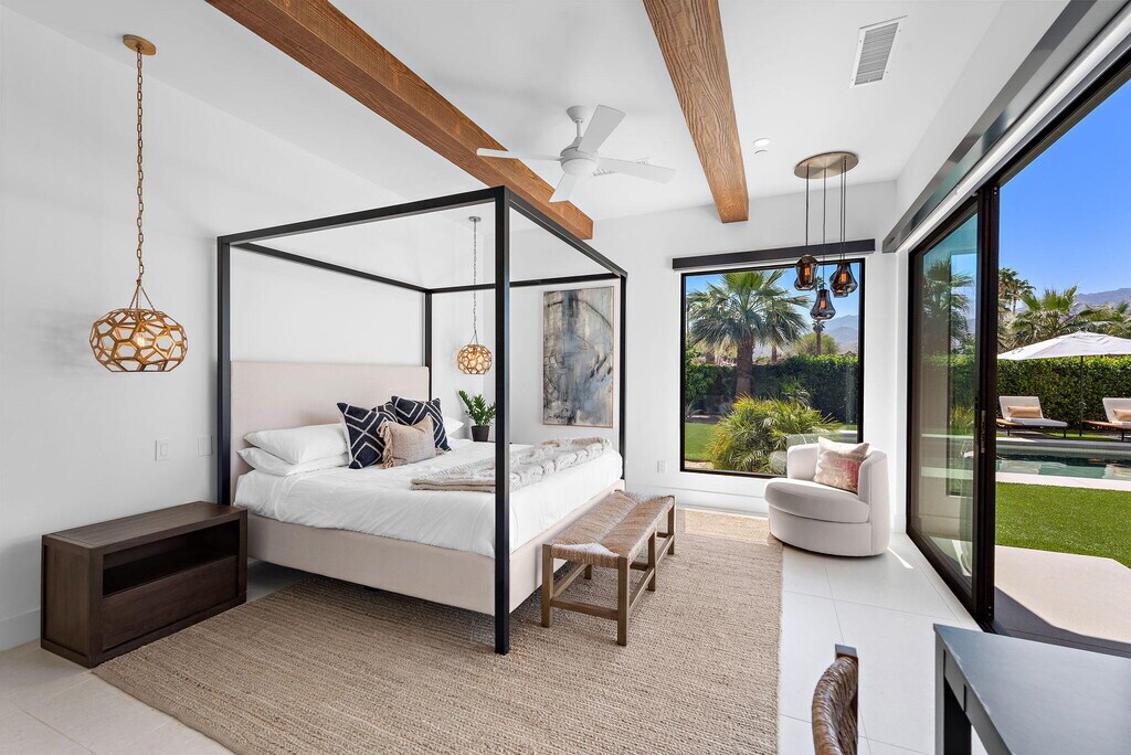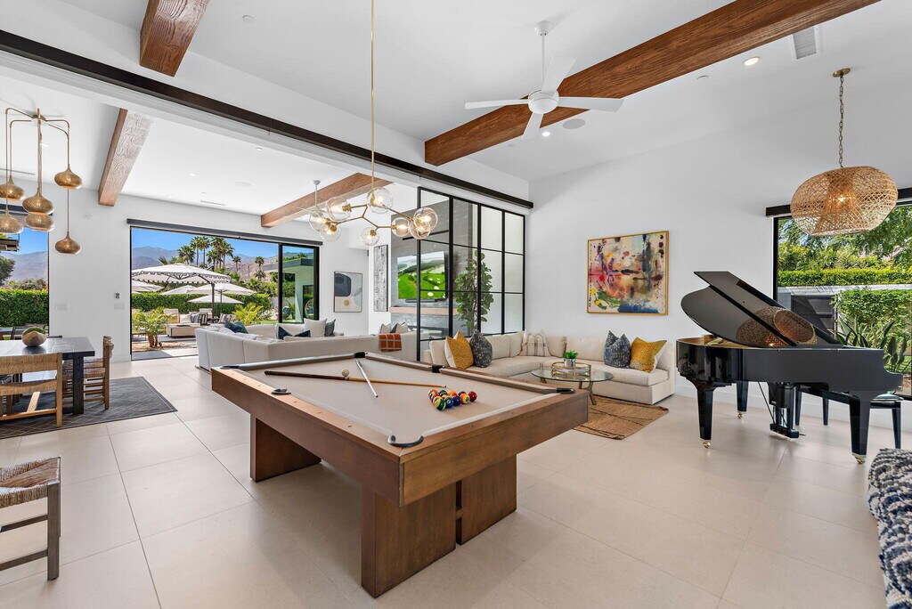 Rancho Mirage Luxury Oasis is available at $30,000 per month. This highly upgraded retreat is just minutes from world-class dining,golf,and shopping—yet feels worlds away in your own private paradise. Discover the ultimate desert getaway at 43421 Joshua Road—a private,resort-style estate on over half an acre in the heart of Rancho Mirage. With expansive panoramic mountain views,a perfect blend of sophistication,wellness along with outdoor living space,this one-of-a-kind retreat is designed for relaxation,play,and taking in our beautiful sun filled days. Step outside into your own private playground including multiple private courtyards: a sparkling pool with baja shelf,spa,cabana,outdoor shower,and bathroom. Challenge friends on the regulation-size pickleball court,work on your short game at the putting green,or enjoy a friendly match of bocce ball. When it's time to unwind,gather under the covered lounge with large-screen TV,patio heaters,and a fully outfitted chef's kitchen—complete with pizza oven,BBQ,fridge and sink. End the evening around the fire pit for cocktails,stargazing,under the desert sky. Inside,soaring ceilings and a sleek 60'' gas fireplace that anchors the great room,joined by a baby grand piano,pool table. The gourmet kitchen features premium appliances,dual ovens,oversized range,wine fridge,and a large prep island with seating—perfect for casual breakfasts or hosting dinner for friends. The expansive primary suite offers a California king bed,mountain views,spa-inspired bath with soaking tub and walk-in shower,and a private treadmill room. Two additional guest suites and a detached casita each feature California king beds,ensuite baths,smart TVs,and private patios. Smart home features,8 TVs,surround sound,high-speed Wi-Fi,EV charger. Home is fully equipped with all you will need to enjoy your stay. MLS # 219141618