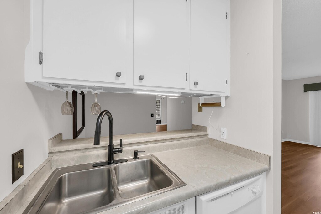 Immaculate first floor 2bd 2bth end unit is Move-In ready. Completely updated with new Flooring, Granite Counter Tops, Tiled Tub & Shower. Located east of Hwy 17 with outside storage, convenient for beach, golf or fishing items. Salt Marsh Cove has a large community pool. The community dock displays wonderful views of the marsh plus ideal for crabbing or fishing.