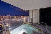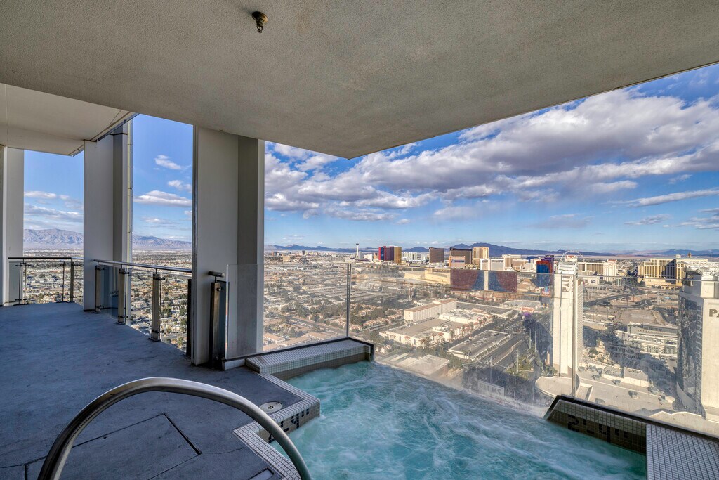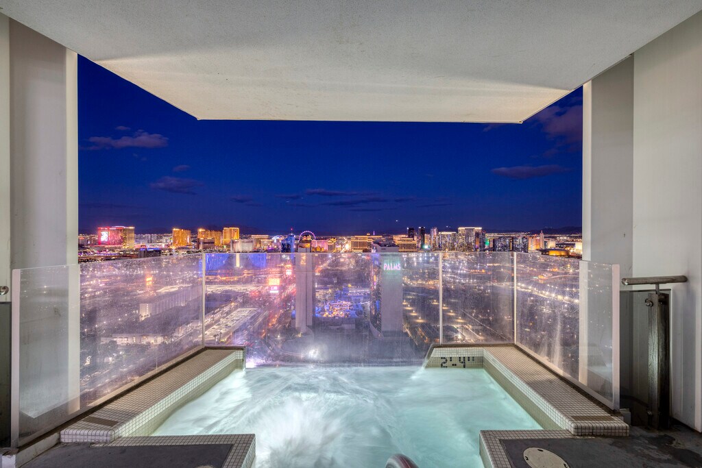 VEGAS BABY! Live like a VIP in this stunning 3,800 sq. ft. penthouse with an infinity-edge spa extending off a private balcony, offering breathtaking views of the Las Vegas Strip and skyline. Enjoy custom lighting, sleek hardwood floors, and floor-to-ceiling glass walls. With 4 luxurious bedrooms, 3.5 spa-like bathrooms including a master suite with a soaking tub and a full gourmet kitchen, this is the ultimate Vegas escape. Book now for the experience of a lifetime!