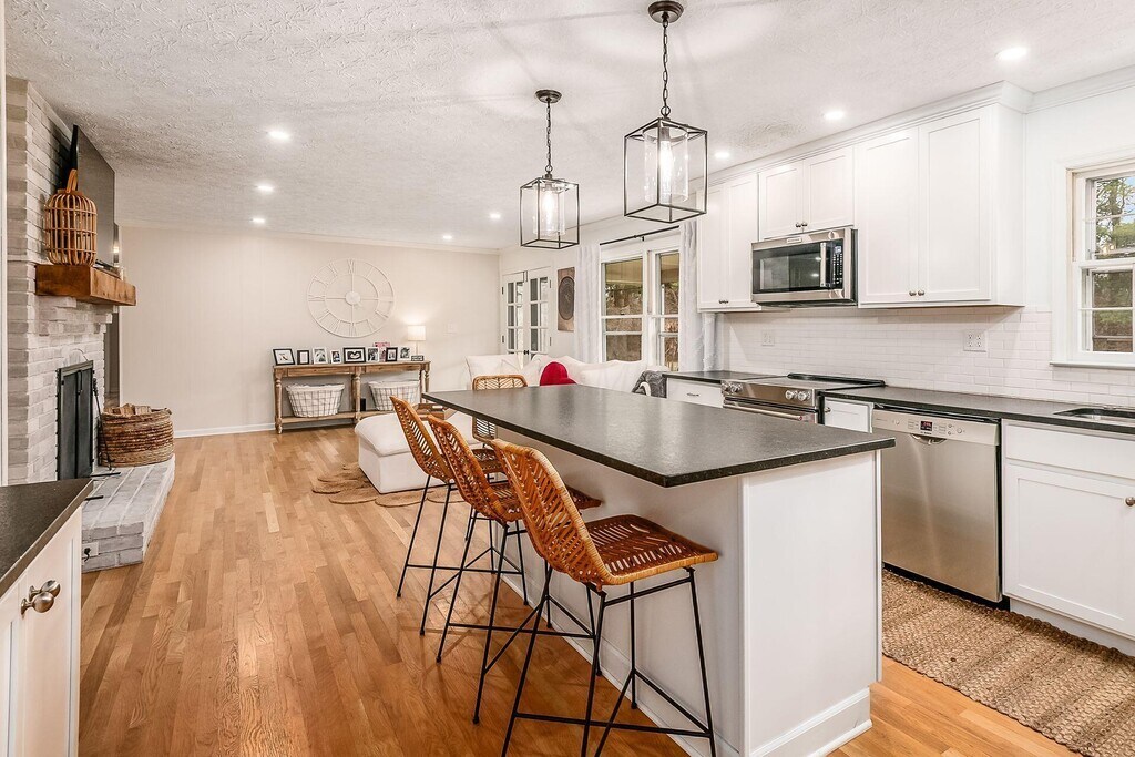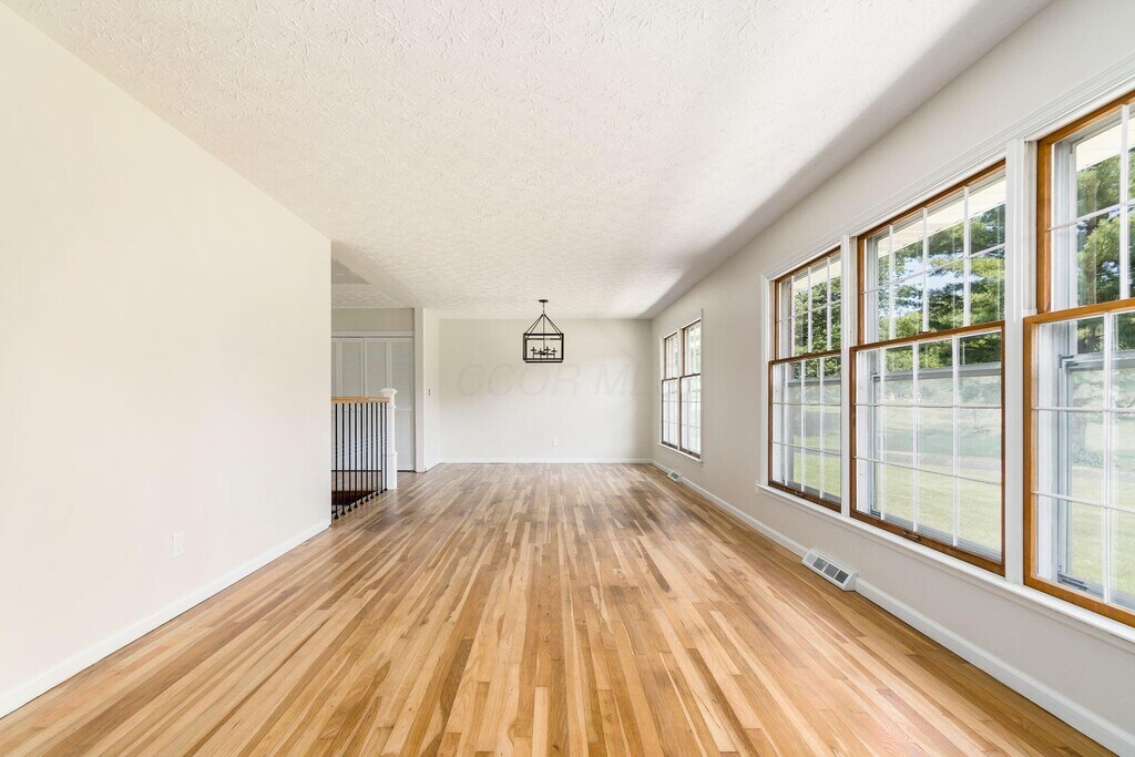 Remodeled Ranch in the heart of Dublin! Walk or bike to the new Bridge Park District!. Gorgeous acre property completely private-surrounded by trees! Walk in the front door and onto hardwood floors throughout the main level. Plenty of space to relax with both a living room and family room on the main level. The classic tuxedo kitchen was taken down to the studs and completely remodeled in 2020 with new appliances, granite and cabinets. Relax on the covered back porch and enjoy the views-rain or shine! Washer/dryer is also provided and is on the main level. 4 nice sized bedrooms and closets with custom shelving. All updated baths-owner bath w/shower, large hall bath with tub/shower combo, and a half bath off the kitchen/garage. Large two car garage. Full basement allowing for an abundance of storage plus an additional finished rec room (not included in SF). Everything was updated in 2020. New furnace, ac, and hot water tank. Not your typical rental!!