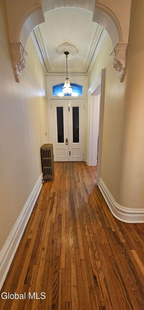 Edwin HershClassic Albany Brownstone with Garden/basement apartment,located close to the Palace Theater and the downtown Albany entertainment district and all that it has to offer. Easy access to shopping dining and entertainment venues as well as Government Offices and major highways. This unit occupies the top three floors consisting of a sitting room,foyer,and living room,all with hardwood,on the first floor. The second floor has one one bedroom,kitchen with dining area,all with hardwood,a full tile bath with walk-in shower,laundry closet with washer and dryer ( stackable ). The third floor has two bedrooms with laminate flooring and a full bath with a clawfoot tub. There are numerous fireplaces which have not been used in many years and the seller considers them to be decorative only. Enjoy the great views of the Albany Skyline from the rear of your home. MLS ID 202611483