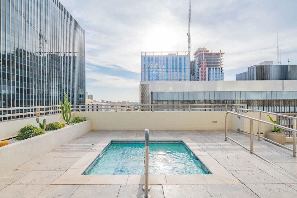 Relax and feel at home in this stylish apartment located in the heart of Phoenix. This 2-bedroom, 2-bathroom unit is in a vibrant area home to numerous award-winning restaurants, shops, historic landmarks, and attractions. From this prime location, exploring Phoenix and the surrounding region is easy and convenient. The living space features an innovative open-concept design that blends the living and dining areas with the kitchen, creating a modern and sleek living experience. The living room has a sofa bed, chair, 4K 58" HDR smart TV, and coffee table. The fully equipped kitchen includes a microwave, stove, oven, refrigerator/freezer, dishwasher, toaster, coffee maker with coffee essentials, electric kettle, blender, air fryer, sink with hot and cold water, glasses, silverware, pots, pans, and a dining table with chairs. The bedrooms feature an office desk and chair, reading lamps, and a 43" smart TV. The bathroom is stocked with essential toiletries, including a bath with a shower, wash basin, mirror, toilet, towels, hand towels, and washcloths. One parking spot is included. Additional parking may be available in garages or on the street nearby. Pets are allowed, depending on size or if they are service animals, for a fee of $20 per night. Breed restrictions apply: Alaskan Mala Mute, Belgian Malinois, Boxer, Show Chow, Dalmatian, Doberman Pinscher, German Shepherds, Husky Breeds, Pit Bull Breeds, Presa Canario's, Rottweiler, Staffordshire Terrier, and Wolf Hybrid. There is a 2 pet maximum and only cats/dogs are allowed. Early check-in/check-out may be accommodated at a fee of $25 per hour, subject to availability with 24 hours' notice. Staying here places you in a vibrant and dynamic area with a lot to offer. Downtown Phoenix is known for its lively, urban atmosphere, blending modern skyscrapers, historic buildings, and bustling street life. You'll have access to cultural attractions like the Phoenix Art Museum, the Heard Museum, and the Arizona Science Center, as well as various theaters and galleries. A wide range of dining options, from upscale restaurants to casual eateries, and a vibrant nightlife scene with numerous bars, lounges, and live music venues are nearby. You'll find several shopping options, including local boutiques, retail shops, and shopping centers like CityScape Phoenix. Parks and green spaces like Civic Space Park provide a nice respite from the urban environment. Public transit options like the Valley Metro Light Rail make it easy to get around. The area is also bike-friendly and walkable, with many attractions and amenities within walking distance. The Phoenix Convention Center is nearby, making it a convenient location if you're in town for a conference or business event. Quiet hours are between 10 pm and 8 am every day. Noise complaints or any violation of this rule may result in cancellation of booking and removal from property without refund. There is a strict no-party policy. If there is a party of any kind the police will be called and everyone will be removed from the property with no refunds. No unauthorized guests are allowed at the unit, with a $100 fine per guest if discovered. Smoking is prohibited without exception on this property, including balconies and in or around the building, with a fine of $500 if any signs of smoking are found in the unit or on the premises. If you are found to have brought pets without prior notification, there will be a $500 fee. If the noise monitors are tampered with, there will be a fee. Each unit will be issued only one key fob for the entire group to access the building. You may be charged extra for cleaning if the property is left in a state that necessitates additional cleaning. Lost or unreturned keys will incur a $500 fee. For delayed checkout, there will be a $500 late checkout fee. If you are bringing a pet(s), please let us know beforehand for the fees, otherwise there will be a fine of $500 if discovered, no exceptions. [SI]